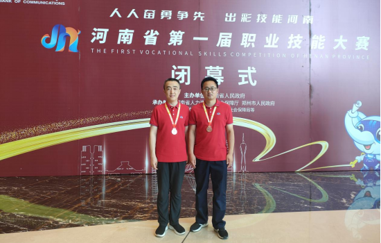 匠心铸就成才梦想,技能创造出彩人生。2022年6月25日—28日,河南省第一届职业技能大赛于在郑州举办。经过激烈角逐,南阳市代表团荣获1银4铜,其中我校参赛选手获银奖1项、铜奖1项。
