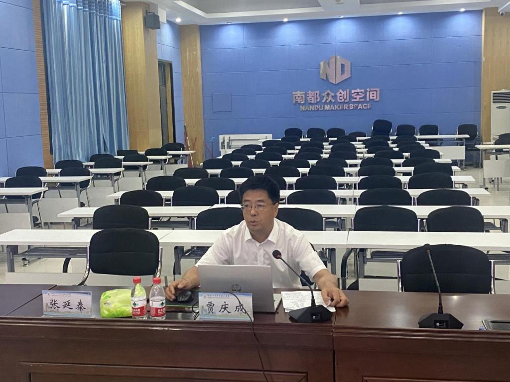 7月11日上午,“河南省职业院校骨干教师‘数字化时代会计事务职业教育发展’省级培训”线上开班仪式在我校孔明路校区图文信息楼T1126举行。副校长贾庆成、经济贸易学院院长张延泰、继续教育学院副院长于玲、新道科技股份有限公司高级教育规划顾问高景新及来自全省25所中等职业院校的30名教师参加了云开班仪式。开班仪式由于玲主持。