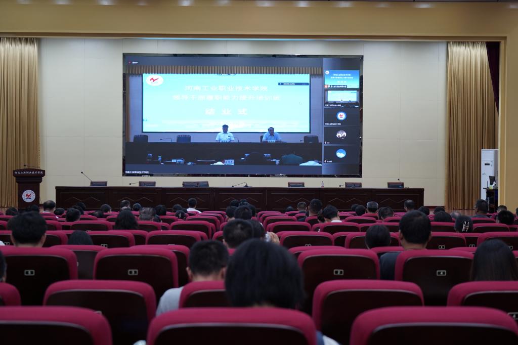 在结业式上,两位学员代表作了交流发言,温道军对本次培训进行了全面总结,对持续抓好学习,高质量推进学校各项重点工作,提出了明确要求。温道军指出,本次培训内容针对性强、授课专家水平高、学习培训效果好,希望同志们把培训期间的所学所思所想所获,转化为推动学校事业高质量发展的实际行动。温道军强调,一是以学为先,练就干事创业的真本领。把学习当作领导干部干事创业的立身之本,当作打破困境、开创新局的金钥匙,时刻把学习作为工作之需、事业之需、发展之需,进一步提升思考研究的能力、解决问题的能力,在学思践悟中干事成事。二是以干为要,锤炼攻坚克难的真功夫。要充分运用所学的新知识、新理论,对标学校的发展目标,紧密结合本单位、本部门工作实际,以更坚定的信念、更广的视野、更高的定位来谋划学校发展的新思路、新举措,真正把学习的成果转化为推动学校事业高质量发展的强大动力。要敢于在关键时刻豁得出、重大任务面前冲得上,做一个扛得了重活、打得了硬仗、经得住磨难的“解题高手”,努力抓重点、攻难点、树亮点、争一流。三是以严为基,维护风清气正的好生态。要更加注重培训成果的转化,既要营造学的氛围、干的氛围,更要营造严的氛围,保持学校干事创业风清气正的良好生态。面对职业教育改革发展的新形势新任务新要求,要勇于实践,把知识转化为能力,练就应对重大挑战、抵御重大风险、克服重大阻力、解决重大矛盾的过硬本领。结合“观念能力作风建设年”活动,深入研究解决当前学校发展中面临的重大问题和短板不足,切实把观念转过来、能力提上去、作风硬起来、激情燃起来,以雷厉风行的执行力、攻坚克难的战斗力、奋进跨越的竞争力推进各项工作,为实现学校高质量发展注入更加强劲的动力,以优异成绩迎接党的二十大胜利召开!