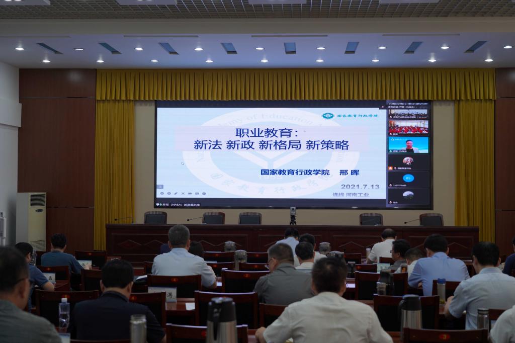 国家教育行政学院职业教育研究中心主任邢晖做题为《职业教育:新法新政与新格局新策略》的专题报告