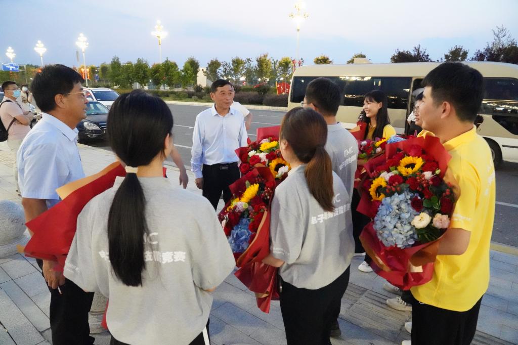 贾庆成祝贺参赛师生取得优异成绩,并表示优异成绩的取得,彰显了学校的人才培养水平和质量,提升了学校的知名度和影响力。希望参赛师生认真总结比赛经验,不断探索比赛规律,继续发挥勇于拼搏的“工匠精神”,再创辉煌,为自己未来的蓝图画上更绚丽的色彩。
