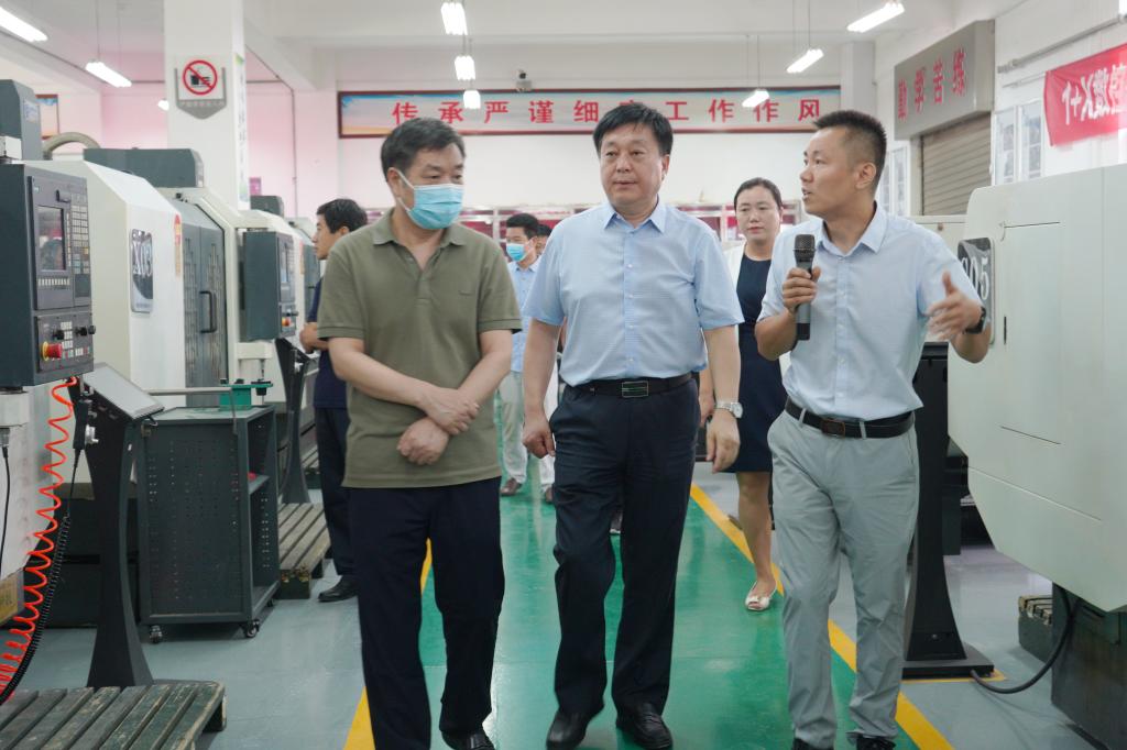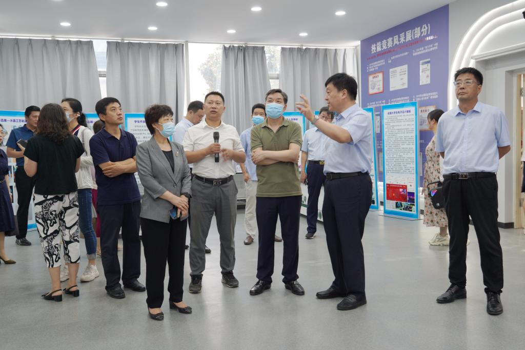 温道军代表学校对柳锋波一行的到来表示热烈欢迎,并陪同参观学校“双高计划”中期建设成果展、京东校园实训中心、数控加工中心、精密制造中心、工业机器人应用工程技术研究中心。温道军从发展历程、党的建设、师资队伍、人才培养、技能大赛、新葡的京集团8814检测站以及近年来取得的国家级标志性成果等方面介绍了学校的基本情况。温道军表示,学校紧扣职业教育发展脉搏,坚持为党育人、为国育才的初心使命,优化专业结构布局,深化教育教学改革,持续推进产教融合,为服务国家战略和经济社会发展培养德技并修的高素质技能强国人才。