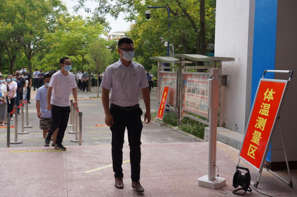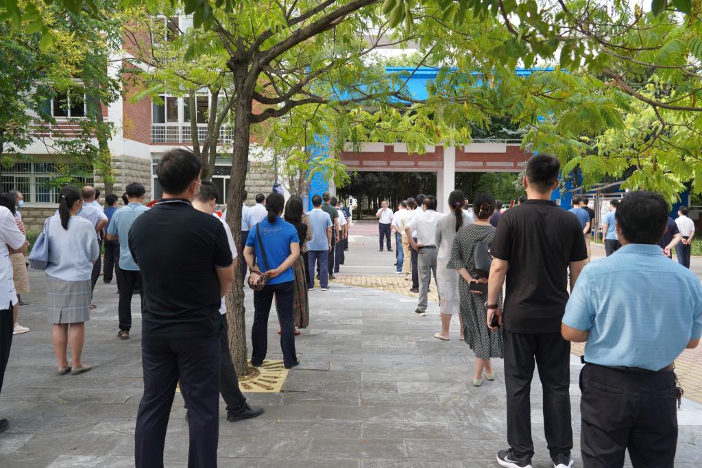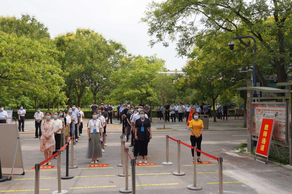 为进一步做好2022年秋季学期学生开学工作,提高疫情防控和应急处置能力,根据《新葡的京集团8814vip2022年秋季学期开学工作方案》,8月23日,学校组织开展2022年秋季开学返校疫情防控演练,校领导温道军、王伟、杜建根、刘纪山、樊有平现场观摩并指导,全体中层领导干部参加观摩,百余名教师代表以学生的角色参加了演练。