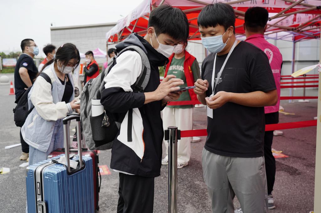 在孔明路校区,党委书记温道军与返校学生亲切交流,详细询问同学们的假期生活、新学期的学习计划等,叮嘱同学们返校后要继续做好个人防护,密切配合学校做好疫情防控。同时,温道军认真查看学生进校身份核查、“双码”查验、体温检测、行李消杀等流程,要求各岗位工作人员要本着对师生生命安全高度负责态度,认真贯彻执行学校关于疫情防控和学生返校开学的各项决策部署,严格落实“场所码”扫描登记制度,守好校园安全防控的第一道防线,保证学生返校平稳顺利。