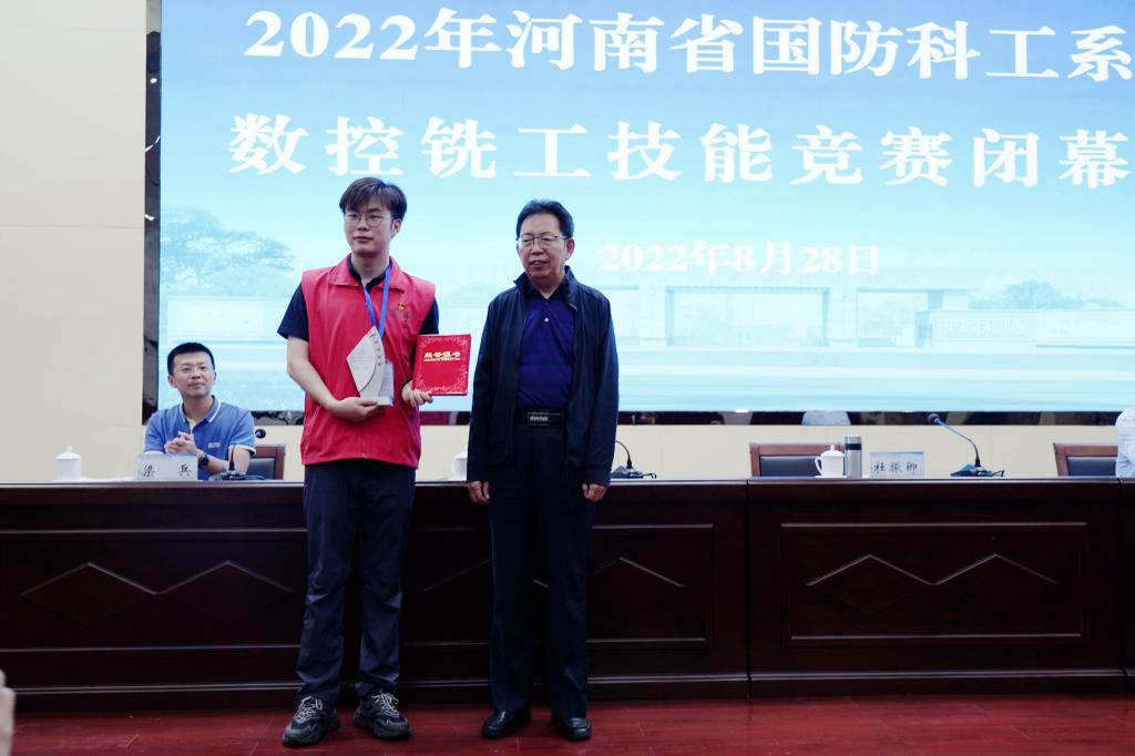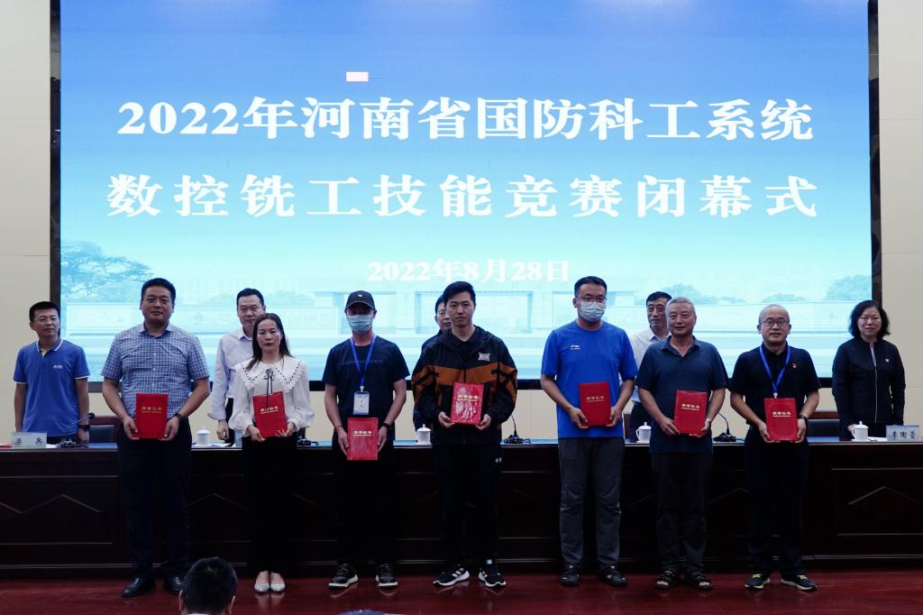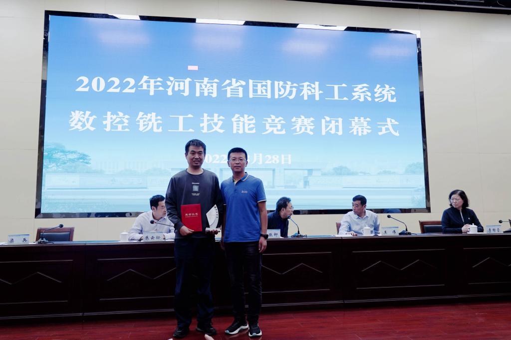 在闭幕式上,裁判长梁兵宣布了数控铣工技能竞赛成绩,李陶营宣读了表彰决定,授予中国空空导弹研究院马凯凯同志金奖、河南平原光电有限公司姚宏永同志银奖、新乡航空工业(集团)有限公司赵永强同志铜奖。授予中国空空导弹研究院、河南平原光电有限公司、新乡航空工业(集团)有限公司、郑州飞机装备有限责任公司、河南北方星光机电有限责任公司、中国航空工业集团公司第六一三研究所、南阳向东机械工业有限公司、中光学集团股份有限公司、河南航天工业有限责任公司、新葡的京集团8814vip等10个单位优秀组织奖。