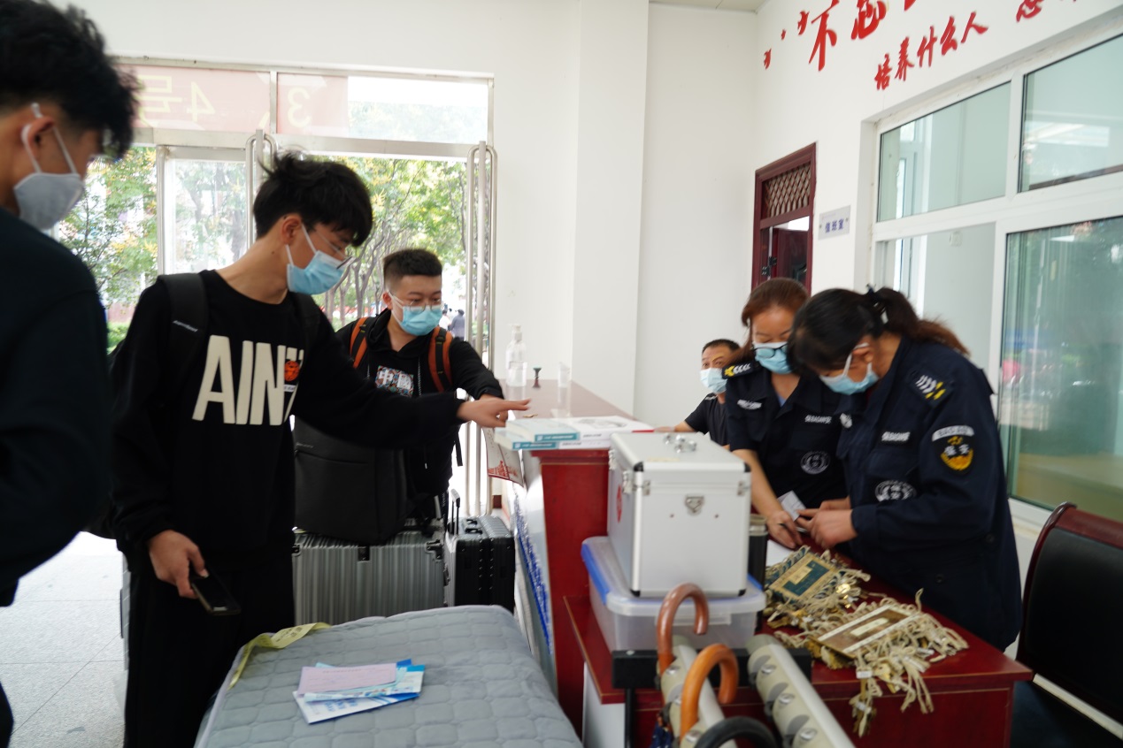 平安校园,有我保卫。9月1日,2022级迎新工作分别在孔明路校区、光武路校区拉开帷幕,为了确保校门口交通顺畅,保卫处工作人员及时做好与交通管理部门、公安消防部门沟通与协调,全力确保新生返校期间的交通安全畅通。迎新期间,全体保卫干部、安保队员驻守门岗一线,严格落实疫情防控措施,严格人员出入管理,加强校园周边、学费收缴处及学生公寓等重点区域的24小时不间断巡逻,确保新生财产安全及迎新场地各种设施安全。