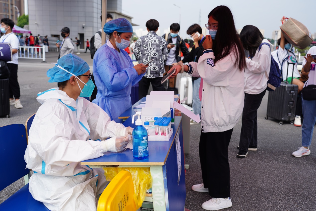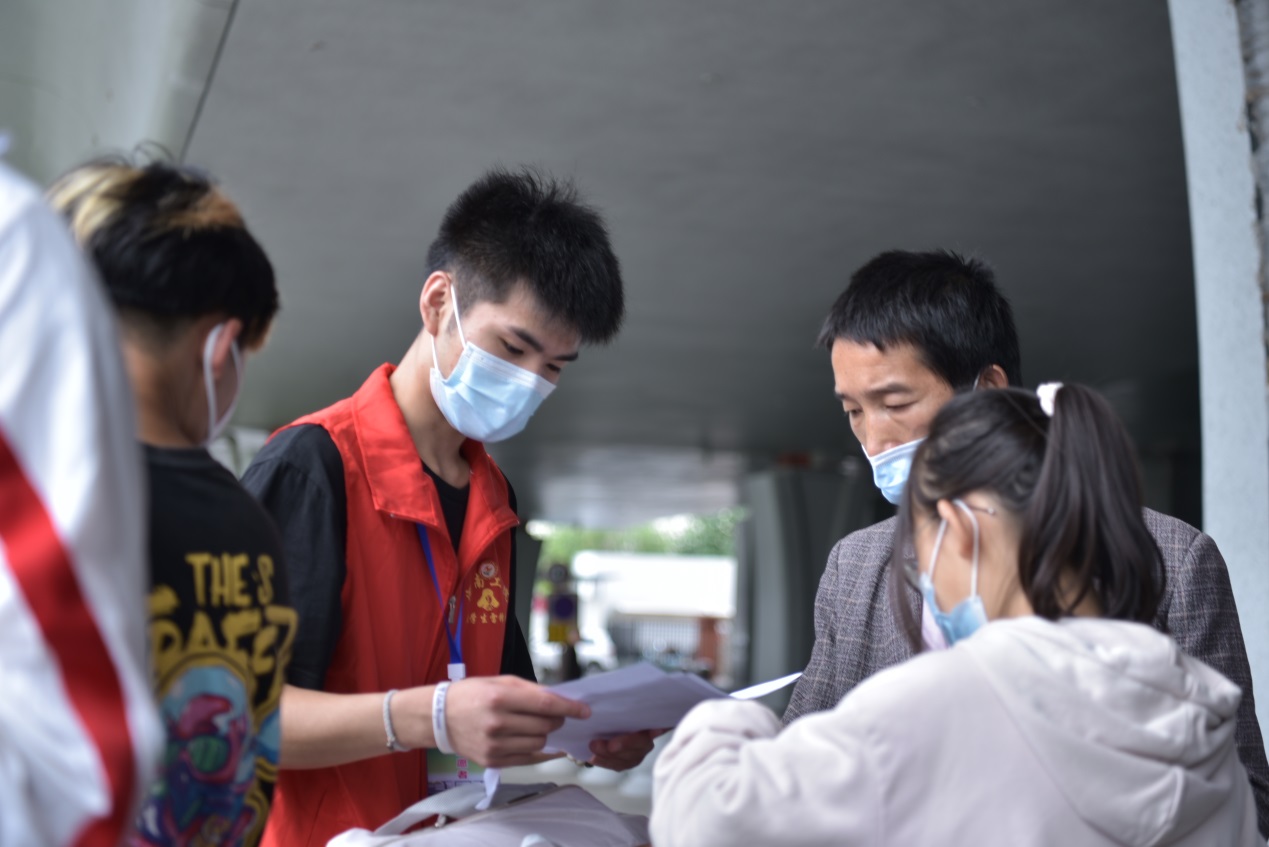 “医”路守护,健康无忧。为了全面保障新生入校的安全,新生报到期间,校医院提前筹备,全方位落实保障措施,多渠道保障物资供应。开展突发疫情应急演练和防疫人员业务培训,全力做好迎新期间的24小时医务人员值班和急救车辆的医疗服务协调工作,并在学校门口设置核酸检测台组织开展新生入校的集中核酸检测工作。新生在工作人员和志愿者的引导下,佩戴好口罩,凭借着绿色行程码、身份证、通知书等在校医院医生严格消毒并测量体温正常后方可进入校园。