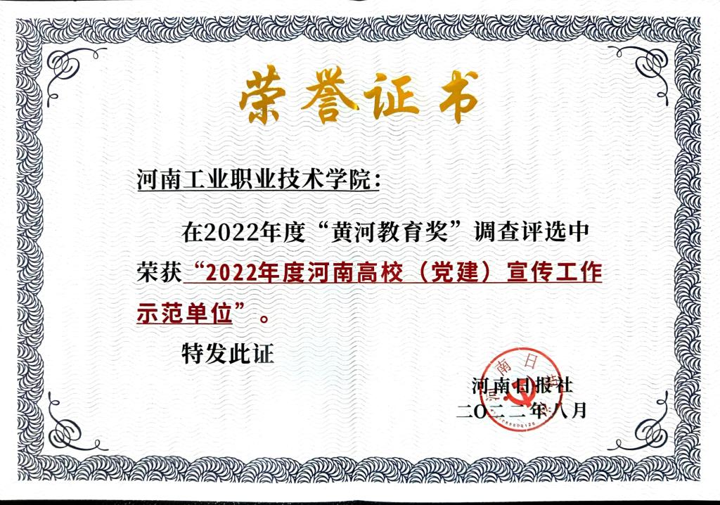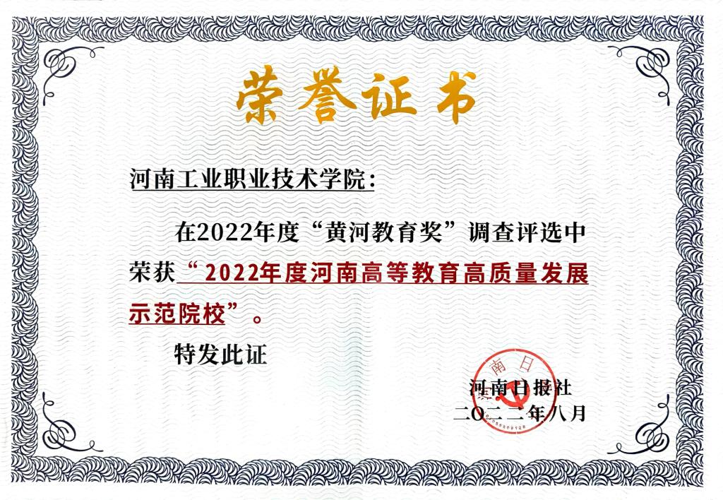 近日,河南省第十三届“黄河教育奖”推选活动传来喜讯,我校荣获“2022年度河南高等教育高质量发展示范院校”“2022年度河南高校(党建)宣传工作示范单位”两项荣誉。