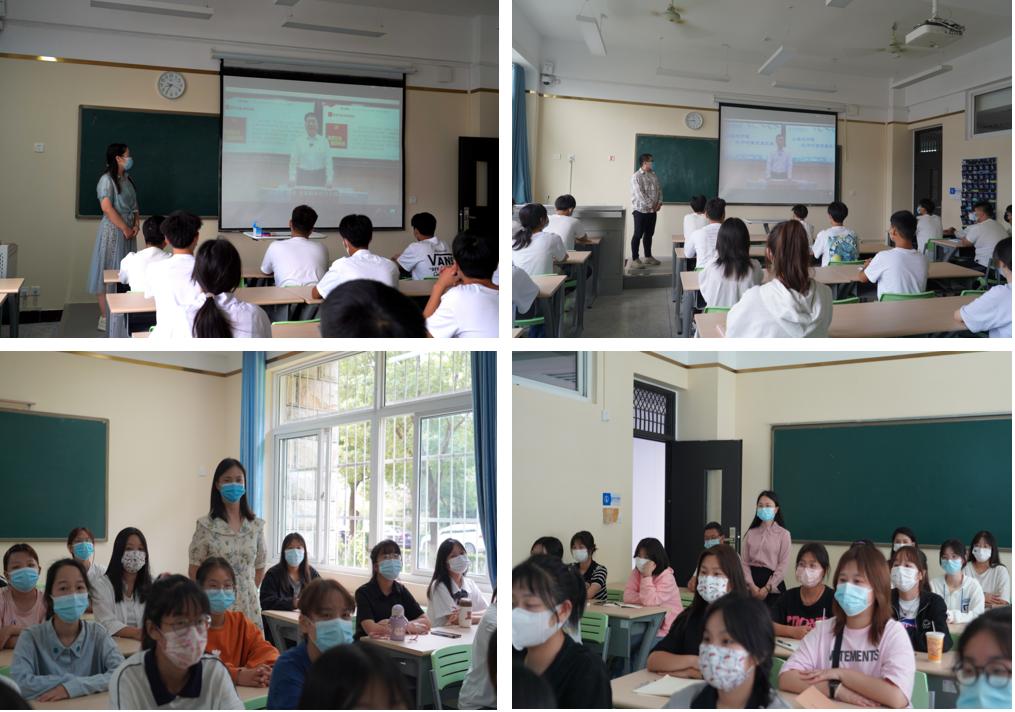学校基础科学教学部王劲松主任通过阐释何谓大学、何谓大学之道、中国传统文学的基本特征、文学的积极作用,激发学生学习中国传统文学的兴趣,教育引导学生坚定文化自信,增强民族自豪感和认同感,进而扎根诗书、向上生长、崇德向善、向美而生。基础科学教学部王小逢老师围绕中华文化“崇德向善 向美而生”的显著特征,阐述赓续中华文明的重要意义,教育引导当代大学生继承、发扬优秀传统文化中的情怀、使命、担当。马克思学院郭静老师引带领学生了解二十大对党和国家的重要意义,引导学生从百年党史中汲取青春奋进力量,努力做强国新征程上的有为青年,鼓舞和激励学生以良好的精神面貌开启2022年秋季学期新征程,以奋进姿态喜迎党的二十大胜利召开。校医院路超医生围绕新冠肺炎疫情防控、健康科普、个人防护等方面做好教育引导,帮助广大学生增强防护意识、掌握防护技能,维护师生生命安全和身心健康。