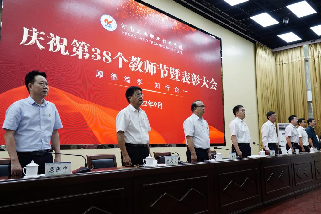 9月8日下午,学校在孔明路校区大学术报告厅举行庆祝第38个教师节暨表彰大会,表彰一年来在教书育人、管理育人、服务育人和教育教学改革、技能竞赛中做出突出贡献的先进集体和先进个人。学校领导温道军、王伟、杜建根、王仁伟、贾庆成、李荣胜、屈保中、樊有平出席会议,优秀教师、优秀教育工作者代表和师生代表200余人参加会议,会议由校党委书记温道军主持。