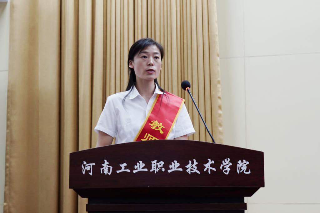 校党委副书记杜建根宣读了军工系统、学校关于2021-2022学年优秀教师、优秀教育工作者、师德先进个人和十佳优秀辅导员的表彰决定;副校长贾庆成宣读了学校2021-2022学年教学优秀项目及教师的表彰决定;工会主席屈保中宣读了学校2021-2022学年技术标兵、技术能手、教职工技能竞赛的表彰决定。与会领导向优秀教师和优秀教育工作者代表、教育教学改革优秀成果和项目代表、技术标兵和技术能手代表颁奖。教师代表任越美老师和辅导员代表朱源源老师发言。