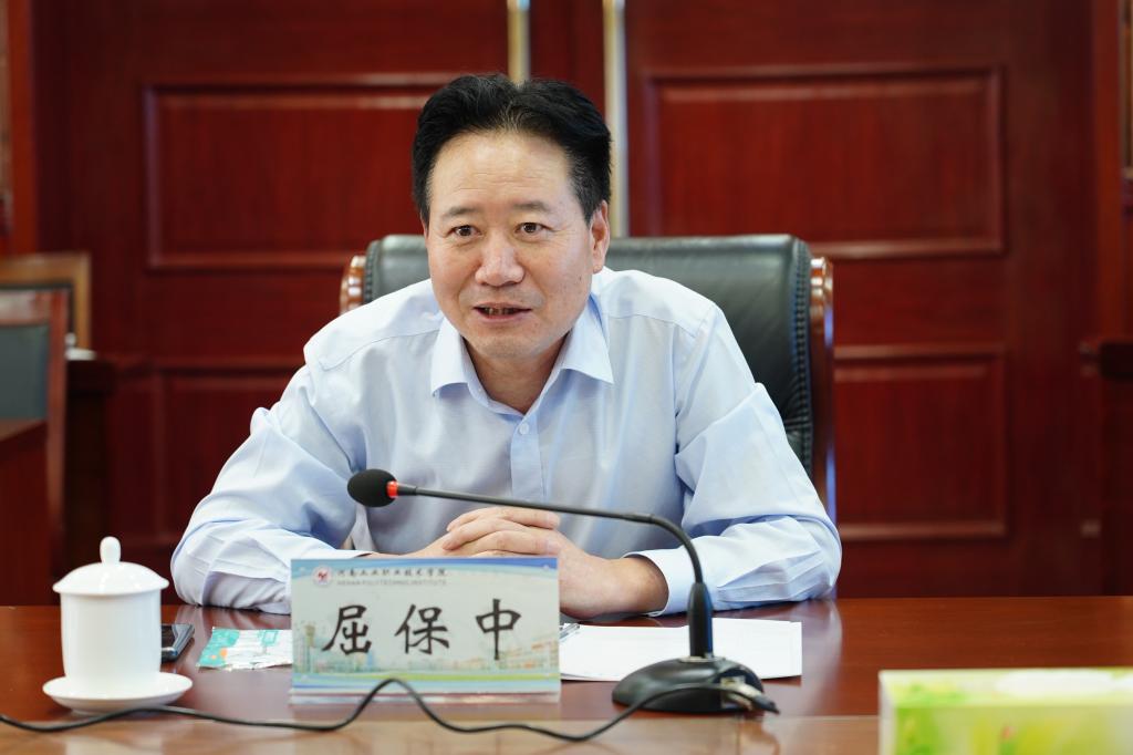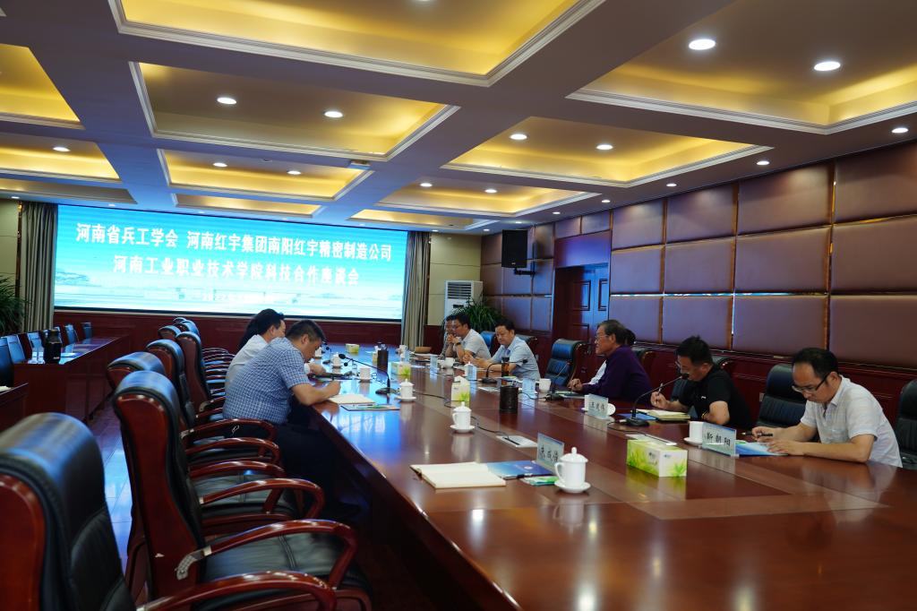 近日,河南省兵工学会监事长李恒坤、理事长范军、河南红宇集团南阳红宇精密制造公司总经理王建伟一行七人到我校调研交流并洽谈科技合作事项。学校工会主席屈保中出席会议,科技外事处、产教融合发展中心、机械工程学院、自动化工程学院负责人参加会议。