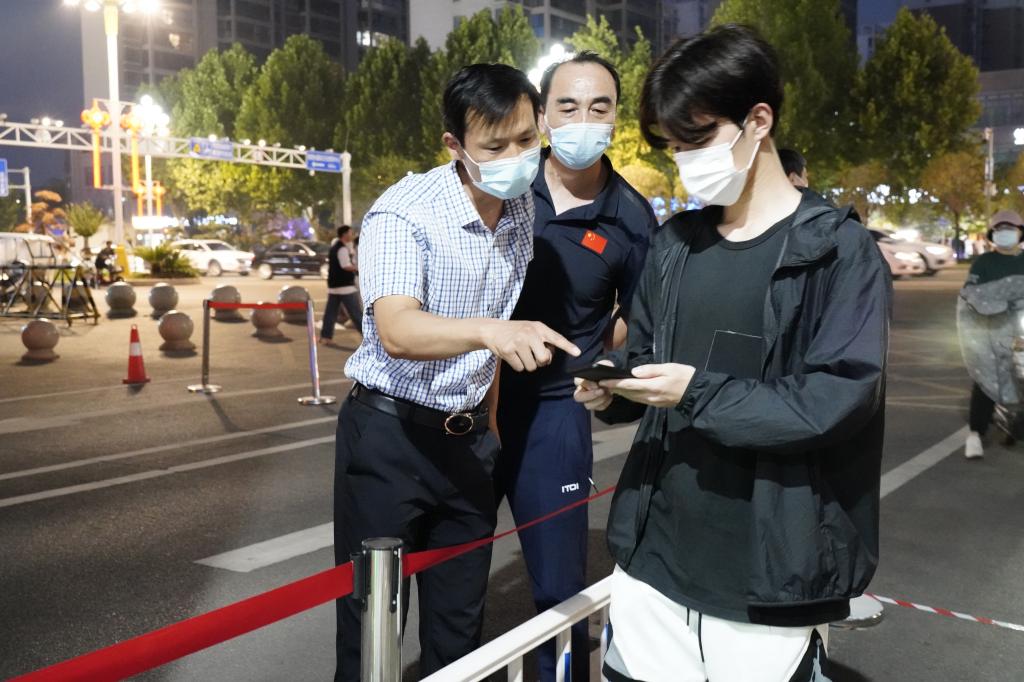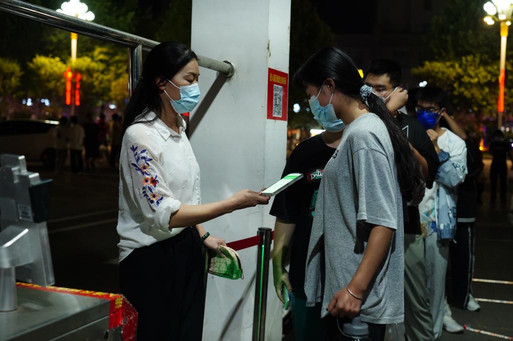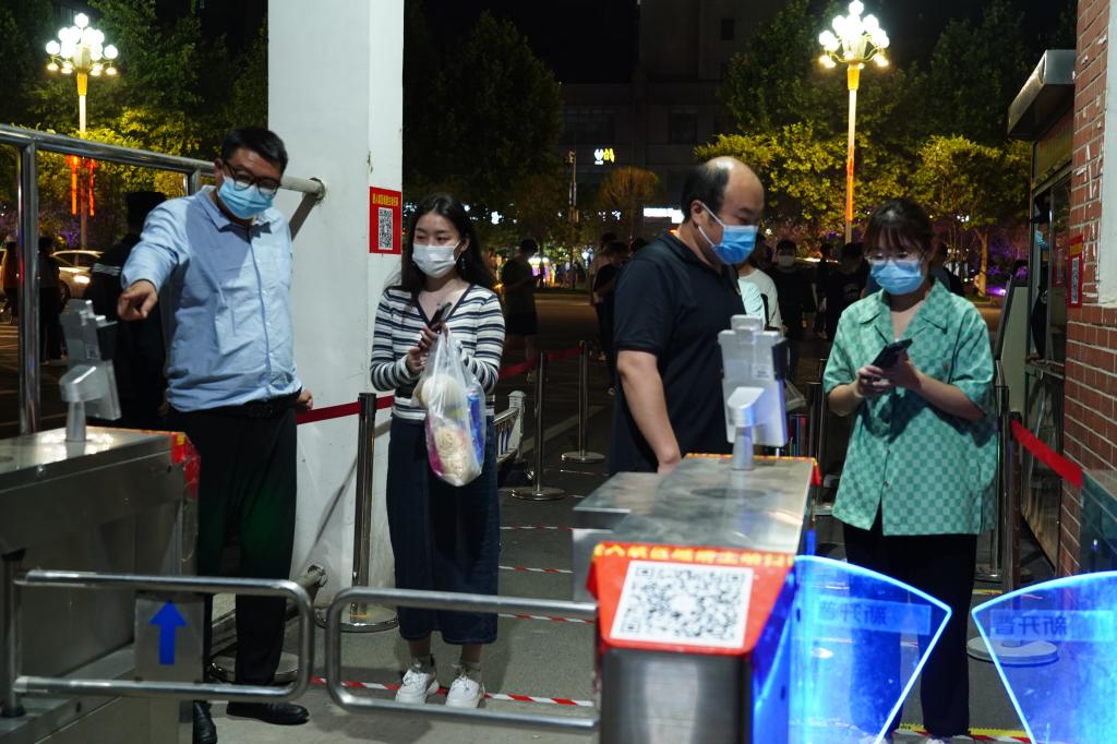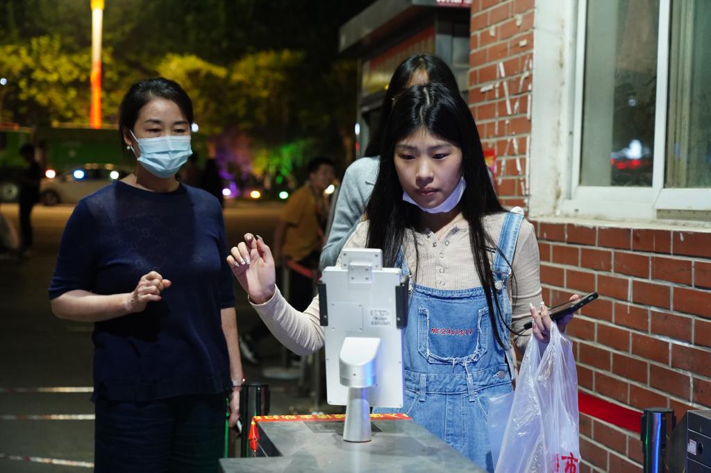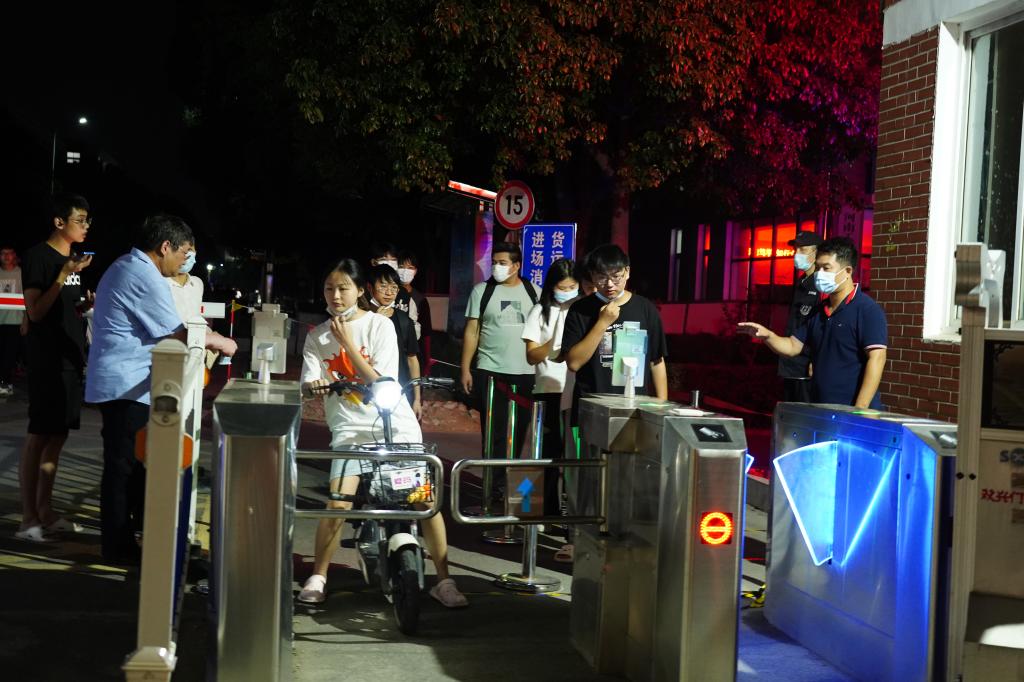 “请同学们扫场所码,打开行程码、健康码,按照地面上的一米间隔线,有序排队刷脸、测温入校。”这句话已经成为在孔明路、光武路校区值班的党员干部挂在嘴边的叮嘱。