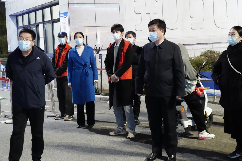 温道军一行先后来到孔明路校区南门、东门,慰问正在值班的中层干部和保卫工作人员,询问了解值班人员值守情况、防控措施落实情况。