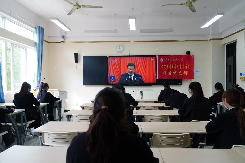 文化旅游与国际教育学院团总支组织学生收看开幕会