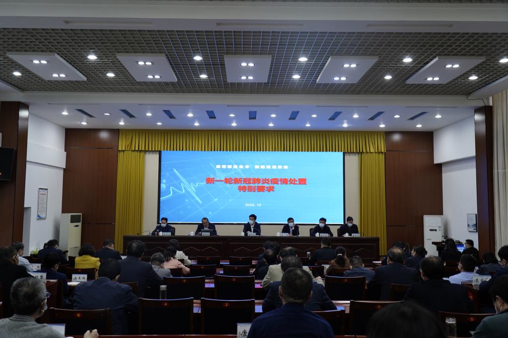 10月25日下午,学校在办公楼一楼会议室召开疫情防控工作会议,校领导温道军、王伟、杜建根、李荣胜、屈保中、樊有平出席,全体中层干部正职参加。会议由党委书记温道军主持。