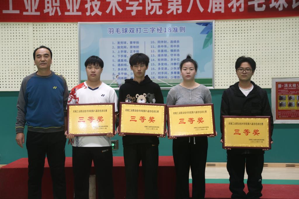 闭幕仪式上,体育教学部主任孟升宣布了本次比赛成绩,校长王伟为文化旅游与国际教育学院颁布了团体赛冠军奖牌;团委副书记杨继良为机械工程学院颁布了团体赛亚军奖牌,保卫处副处长朱瑞飞为自动化工程学院颁布了团体赛季军奖牌;体育教学部主任孟升为汽车与航空学院、测绘环保工程学院、经济贸易学校、电子信息工程学院颁布了团体赛三等奖。