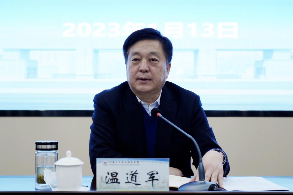 党委书记温道军就贯彻落实好2023年寒假工作会议精神,提出四点要求:一是要担当作为抓落实。2023年,学校在内涵建设、基础设施建设、教学科研等方面取得了一定的成绩,但是学校高质量发展的任务依然艰巨。各单位、各部门的党员干部要提高政治站位,立足本职岗位,充分发挥先锋模范作用,担当作为,勇于创新,强化“上前”意识、“上手”能力、“上进”品质,带动全校教职工团结奋进,努力推动学校各项工作再上新台阶。二是要创优争位抓落实。寒假是变换工作节奏、缕清工作思路的调整期,也是抢抓发展机遇、赢得开年主动的宝贵时间,各单位、各部门要利用好假期,总结2022年工作情况,结合学校“十四五”事业发展规划和“双高计划”建设、提质培优行动计划、绩效考核评价体系等改革发展重点任务,找差距、补短板、强弱项、明方向,高位深度谋划好2023年度工作任务。三是要转变作风抓落实。要推进观念能力作风建设常态化长效化,强化正风肃纪,坚决破除形式主义、官僚主义,以更加优良的作风抓好工作落实。各单位、各部门要不断强化服务意识、创新服务方式、提高服务保障质量,着眼解决师生急难愁盼问题,切实为师生解决实际困难和问题,增强师生的获得感、幸福感、安全感。四是要廉洁自律抓落实。春节将至,各单位党政主要负责人要不断提高政治判断力、政治领悟力、政治执行力,认真履行“一岗双责”,做到知责于心、担责于身、履责于行,教育引导广大党员加强党性修养,进一步坚定理想信念,筑牢思想防线,提高落实中央八项规定精神的思想自觉和行动自觉,营造风清气正的校园节日氛围。温道军强调,2023年是全面落实党的二十大精神的开局之年,是实施“十四五”规划承上启下的关键之年,也是学校“双高计划”建设、推进申本工作的攻坚之年,希望全体教职工能够以饱满的工作状态和务实的工作作风,真抓实干、奋勇争先,为推动学校高质量发展发展、办好人民满意的职业教育贡献智慧和力量。