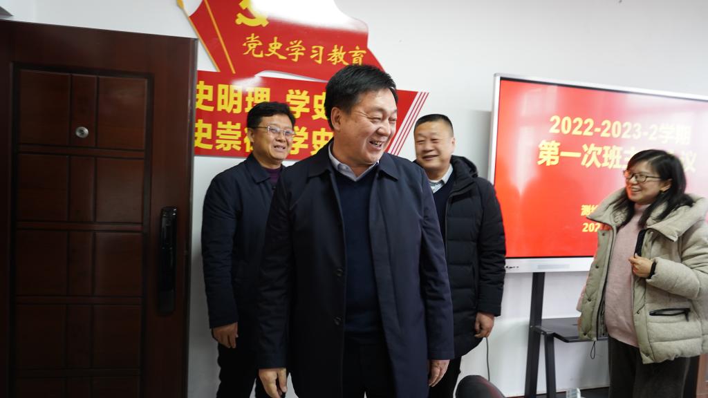 2月10日,新学期开学第一天,学校领导温道军、王伟、杜建根、贾庆成、李荣胜、屈保中,在相关职能部门工作人员陪同下,深入孔明路校区和光武路校区各部门、各学院(中心),实地检查指导春季开学各项准备情况,并为各位教职工送上新一年的美好祝福。
