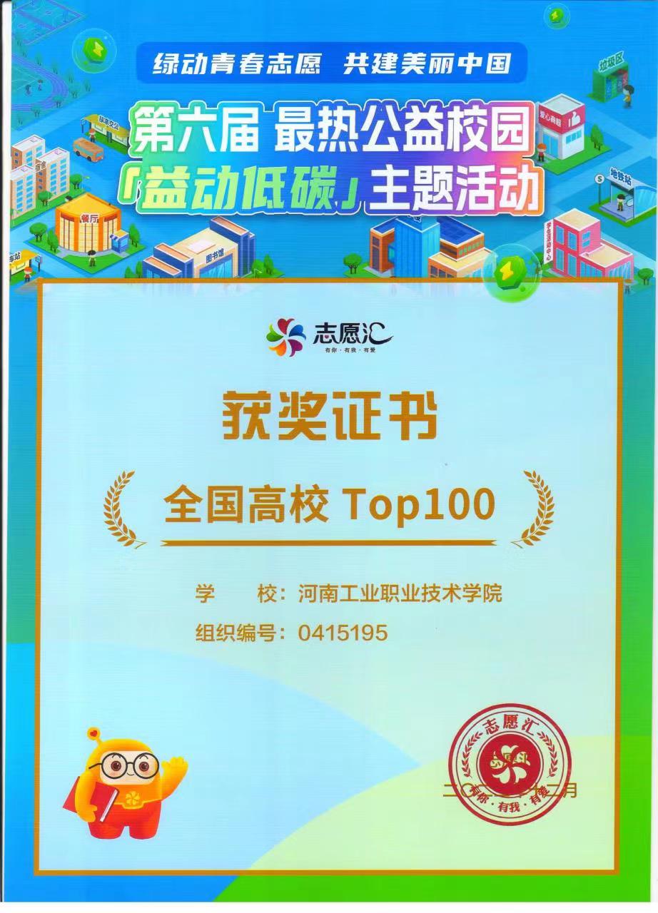 为深入学习贯彻习近平总书记“绿水青山就是金山银山”的绿色可持续发展理念,助力国家生态文明建设,校团委积极宣传并广泛动员广大学生参与志愿汇第六届最热公益校园“益动低碳”主题活动,荣获优秀组织奖,以及1000元激励奖金。