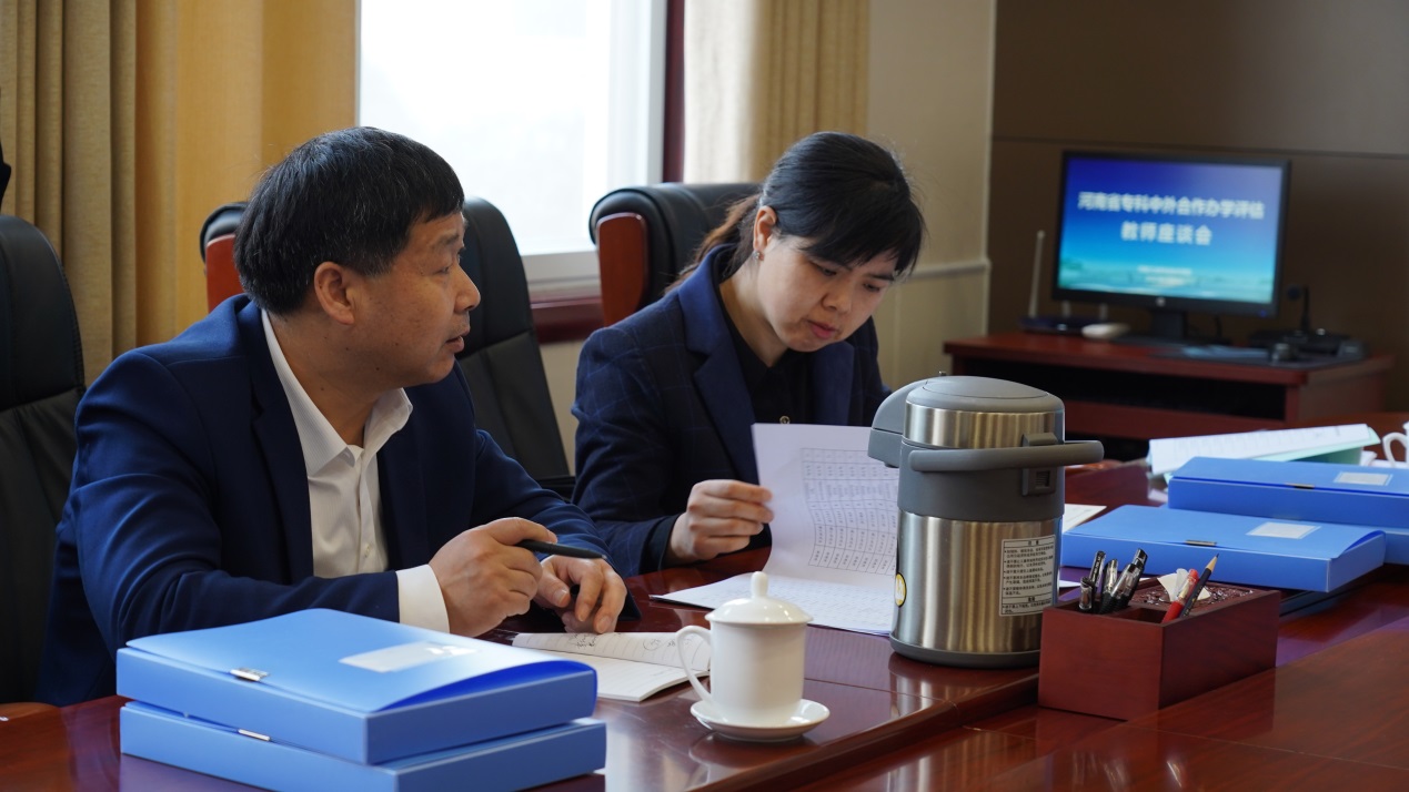3月8日上午,河南省专科中外合作办学评估专家组一行6人莅临我校,对学校中外合作办学工作进行评估检查。汇报会在孔明路校区办公楼第四会议室举行,评估专家组组长、河南省教育对外开放战略研究中心主任石茂生,专家组成员、南京邮电大学国教学院院长汤美玲、河南科技大学国际部部长毛鹏军、黄河水利职业技术学院国际处处长李纪宾、郑州大学国际学院学科办主任李璐、河南省教育评估中心教师王小寅出席会议。学校校长王伟,党委副书记杜建根,副校长贾庆成、屈保中及学校相关部门、学院的负责同志和教师代表参加会议。会议由王伟主持。