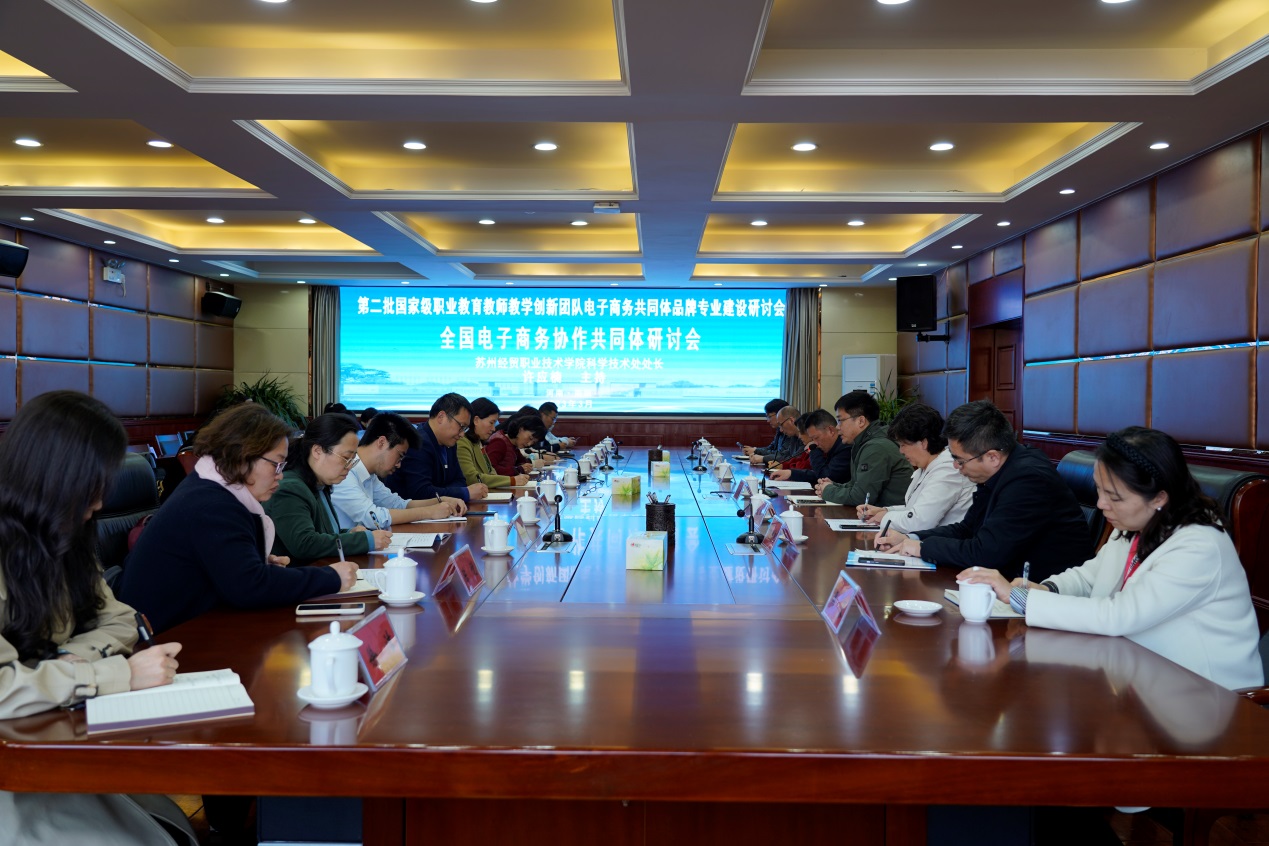 专题报告会结束后,共同体成员单位在学校四楼会议室召开了全国电子商务协作共同体研讨会,会议由苏州经贸职业技术学院科学技术处处长许应楠主持。会上与会专家对以后各共同体单位如何在“共商、共建、共享”上进行了充分的讨论,此次会议的召开为电子商务专业及课程以中文+项目走出国外规划了更清晰的路径,对电子商务专业教学改革的策略进行了较为清晰的部署,也为网络营销与直播电商国家级职业教育教师教学创新团队的建设确定了清晰的路径。