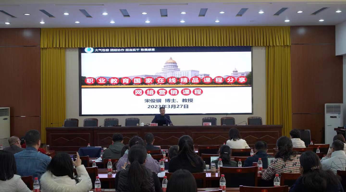 宋俊骥以“职业教育国家在线精品课程网络营销课程”为题,从“申报政策解读与分析、在线精品课程申报策略、在线精品课程建设与实施、在线精品课程申报关注点”四个方面和大家分享交流了经验。