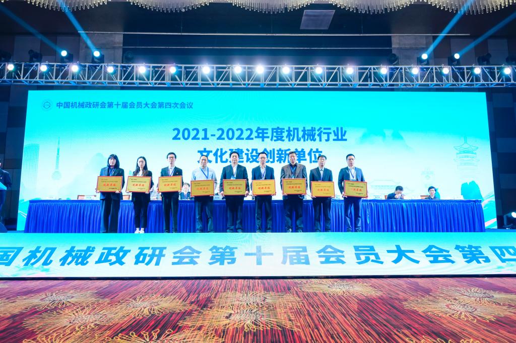 我校党委书记温道军代表学校上台领取“2021-2022年度机械行业文化建设创新单位”奖牌