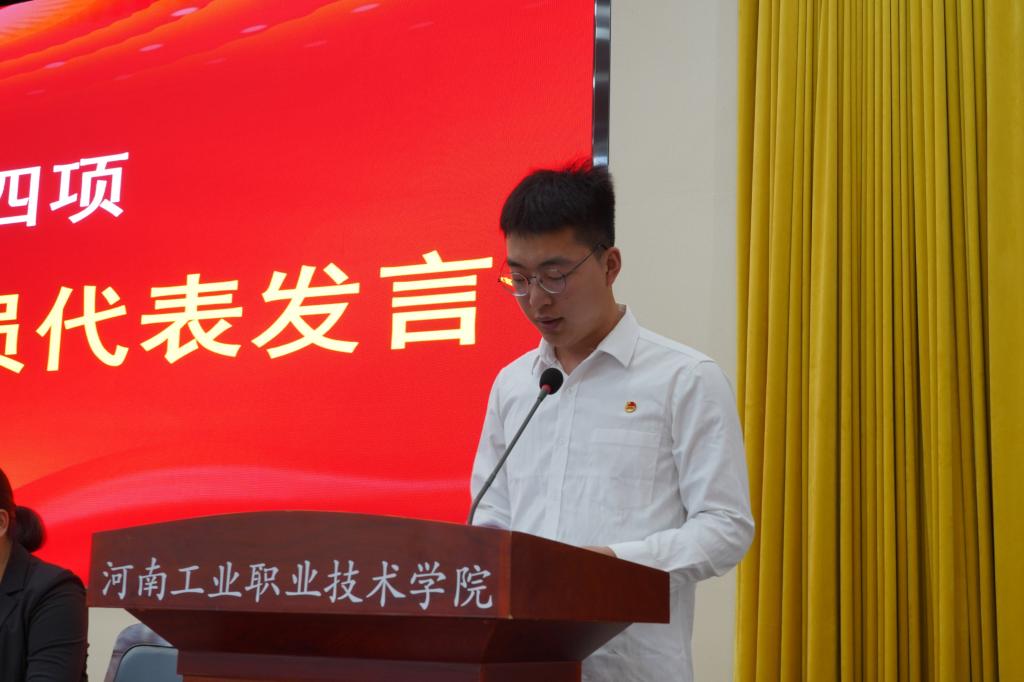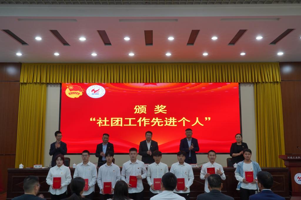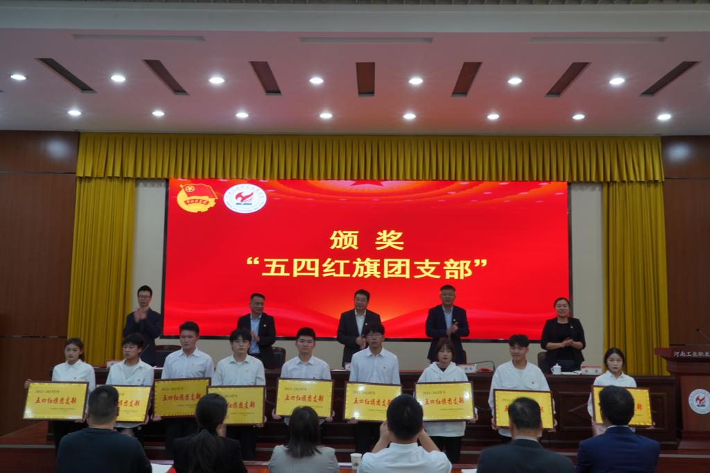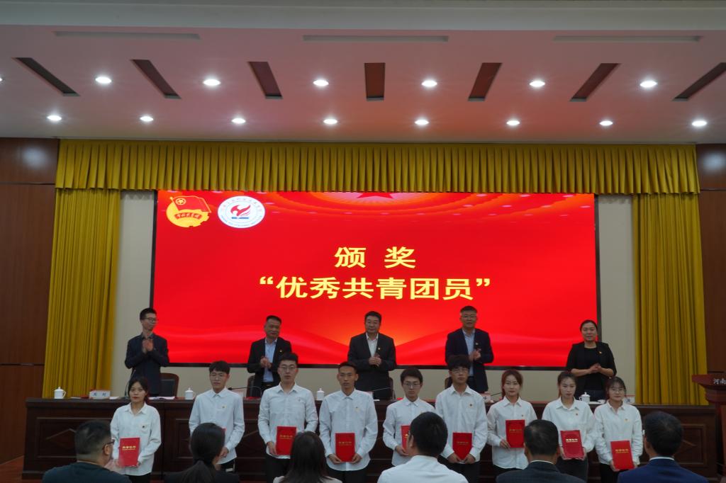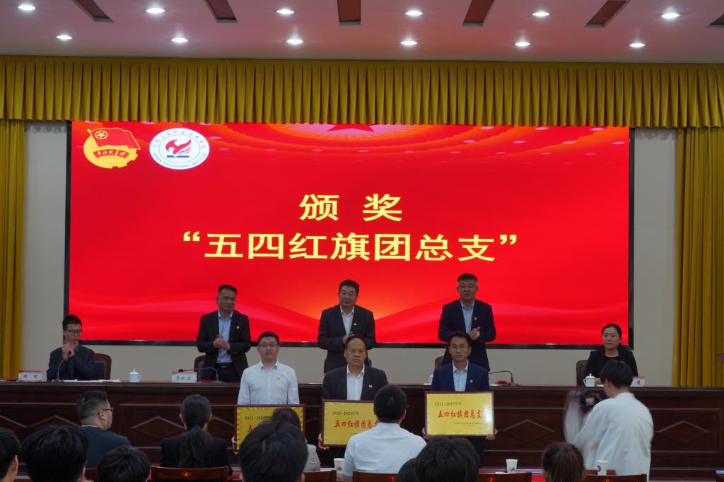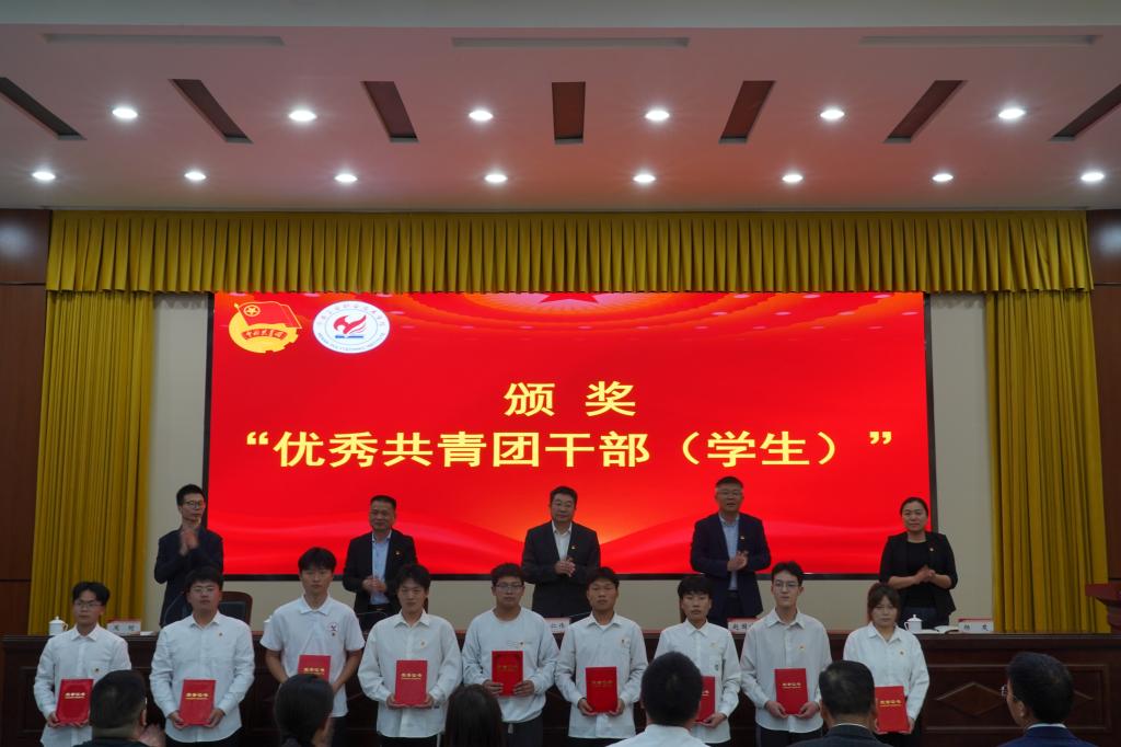 表彰大会上,党委学生工作部部长赵国峰宣读表彰决定,与会领导为获得2022年度五四红旗团总支、五四红旗团支部、优秀学生社团、优秀共青团干部、青年岗位能手、优秀共青团员、青年大学习标兵、志愿服务先进个人、社团工作先进个人等先进集体和先进个人颁发奖牌和证书。建筑工程学院团总支书记朱宗海和自动化工程学院学生靳开放分别代表优秀团干和优秀团员作了交流发言。