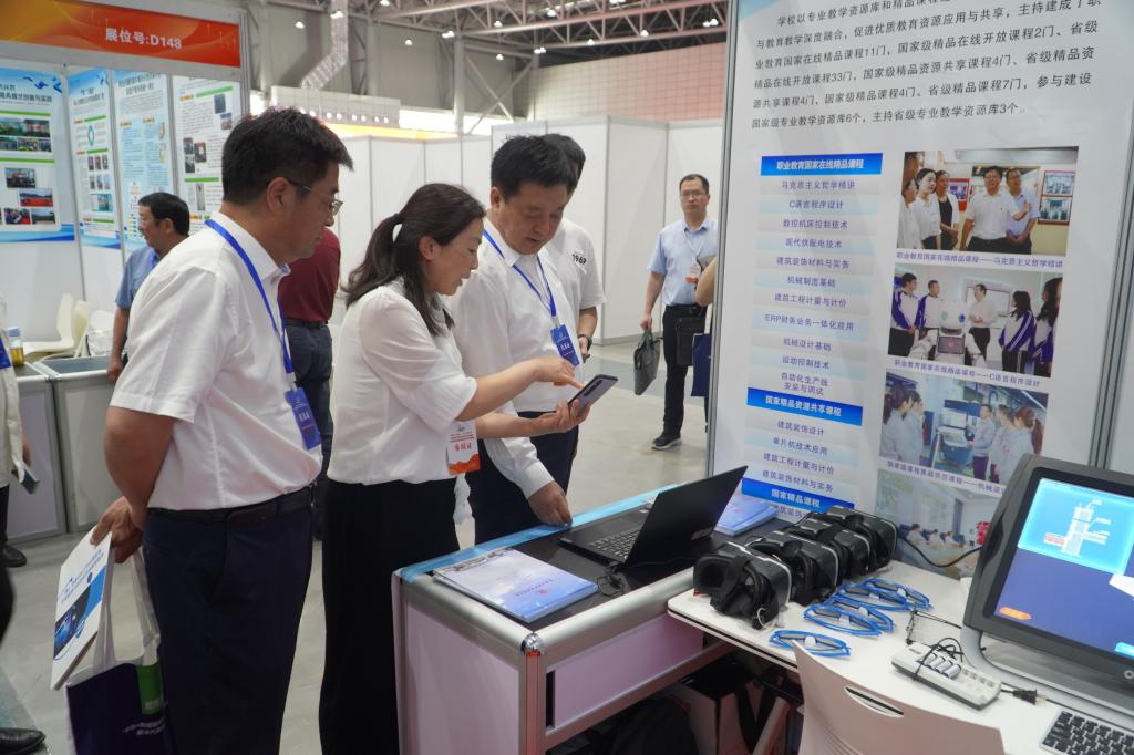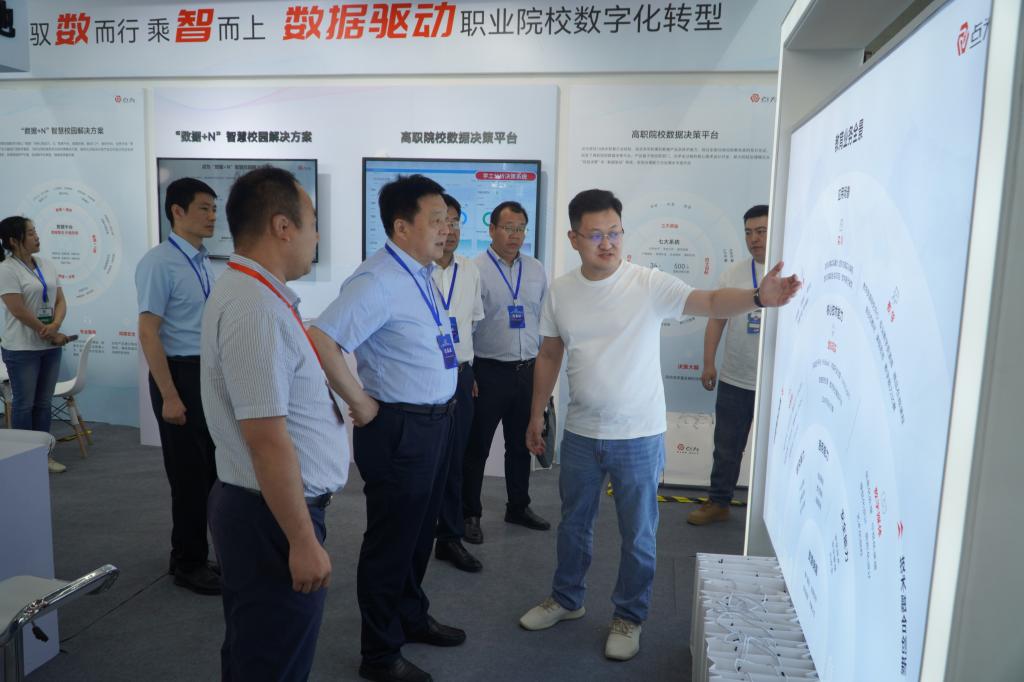 会议同期还组织了职业教育科技创新成果与数智实训装备技术展、“双高计划”建设院校成果展等,温道军一行参观了希沃科技、新大陆教育、宝信科技、三盟科技等多个信息技术类企业参展的软件及装备,听取了探索者机器人开发平台技术讲解,了解了在新一代信息技术蓬勃发展的背景下,信息技术行业面临的机遇挑战、人才需求和转型发展等问题,同时还看望了我校参展人员并了解布展情况。