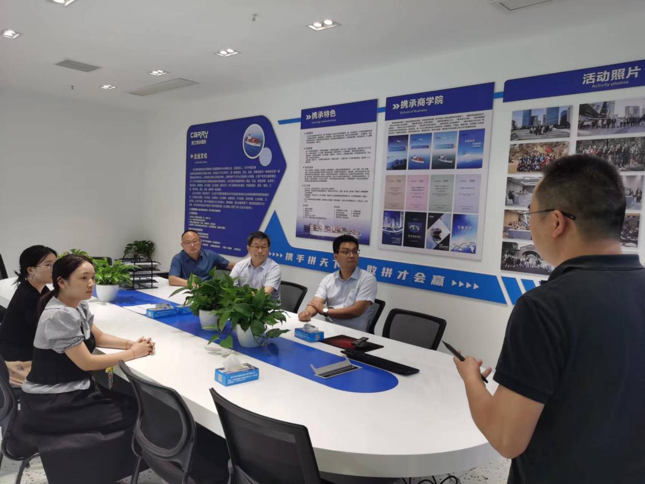在浙江携承国际货运代理有限公司,与公司创始人胡跃进行了亲切交谈,我校文化旅游与国际教育学院商务英语专业3名毕业生陪同,还一起观看了公司总经理胡跃在中央电视台的专访。胡跃详细介绍了在公司工作的3名毕业生情况,赞不绝口,他表示愿与我校开展人才培养、订单培养、学徒制培养、创新创业、产教融合等方面的战略合作,打通人才输出和企业入校的壁垒,实现学生“入校即入企”“入学即就业”。马小兵表示,感谢公司对学校毕业生的信赖,学校将一如既往的加大投入,强化职业素养,注重学生军工精神、工匠精神、劳模精神教育,塑造学生忠毅品性、严细作风、精优质量观念,培养大批的优秀人才,为企业做好服务。