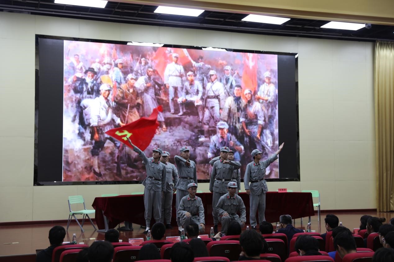 本次比赛各学院高度重视,同学们利用课余时间打磨剧本,精心雕琢每一个角色,确保作品的价值导向和主旨内涵紧跟新时代的主旋律。演出现场气氛高涨,评委老师悉心聆听,观赛同学全神贯注,各个节目紧锣密鼓,演员们声情并茂、富有感情的表演赢得观众的阵阵掌声,纷纷将李大钊、钱学森、黄文秀等先进人物的事迹完美呈现,为观众带来了一场精彩绝伦的视觉盛宴。参赛队伍通过讲、演、说、诵等形式,将伟大的革命精神、“红船精神”、军工精神、红旗渠精神、移民精神等演绎得淋漓尽致。比赛结束,基础教学部主任王劲松老师做了精彩点评,叮嘱同学们要对伟大精神有敬重之情和仰望之意,他说:“只要我们这个民族一代接着一代追求美好崇高的道德境界,我们这个民族就永远充满希望”。在场的评委老师纷纷表示,这既是一场比赛,更是一堂生动的理想信念和爱国主义教育思政课。