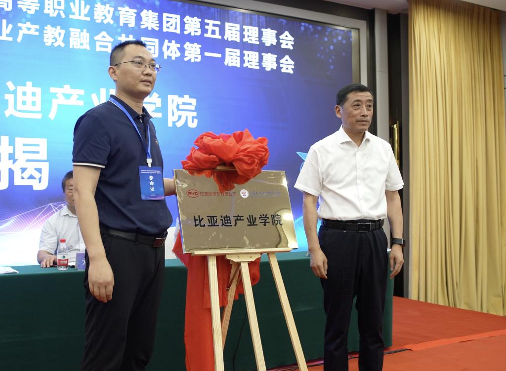 会上,与会领导为新加入的成员单位授牌。新葡的京集团8814vip校长王伟与比亚迪股份有限公司校企合作经理杨双喜共同为“比亚迪产业学院”揭牌。