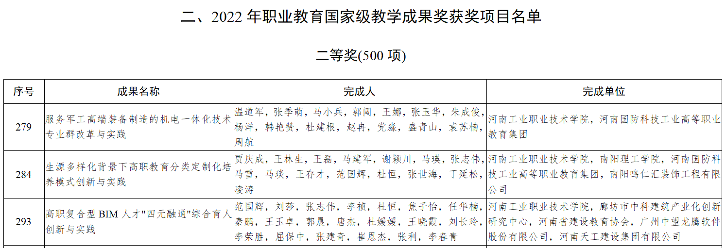 近日,教育部公布了2022年国家级教学成果奖项目,共有1998项成果获得国家级教学成果奖,其中职业教育国家级教学成果特等奖2项、一等奖70项、二等奖500项。由我校主持完成的3项成果获职业教育国家级教学成果二等奖,获奖数量位居全国前列。