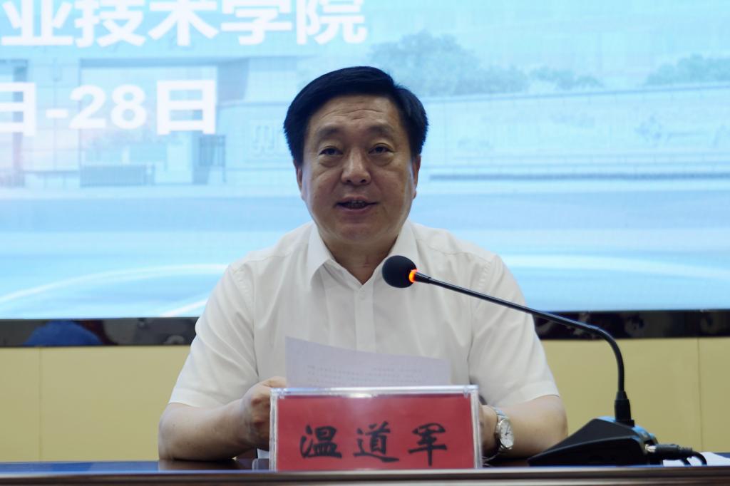 温道军代表学校对各位领导、老师的到来表示热烈欢迎,向长期以来关心支持我校事业发展的省教育厅和各兄弟院校表示衷心的感谢,并介绍了学校的基本情况和近年来学校财务管理工作取得的成绩,表示学校将以此次培训为契机,充分发挥财务工作在事业发展中的支撑、助力与引导作用,为学校高质量发展提供坚强保证。