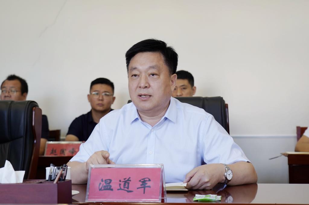 温道军代表学校向刁玉华一行来校调研指导表示热烈欢迎和感谢,并简要介绍了学校的基本情况,重点汇报了学校“双高计划”建设、教学改革、产教融合、社会培训、服务行业发展、校园规划、党建和思想政治工作等方面的工作和取得的成绩。温道军表示,在省教育厅的坚强领导和关心支持下,学校将坚持强化军工办学特色和工科办学优势,在服务国家战略、融入区域发展、促进产业升级、培养技能人才等方面,走质量发展、特色发展和品牌发展之路,努力办好新时代人民满意的职业教育。