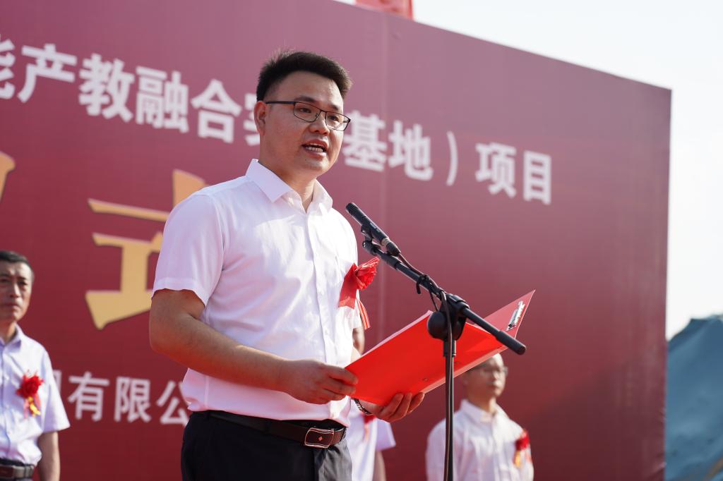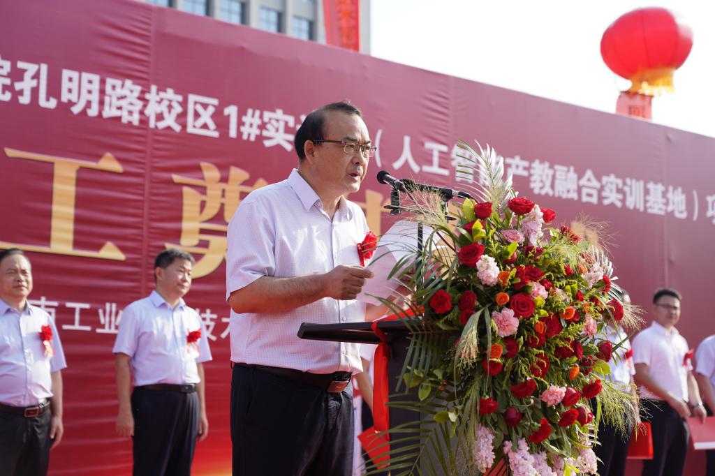 校长王伟代表学校向孔明路校区1#实训楼项目的开工建设表示热烈的祝贺,对莅临仪式的各位领导和来宾表示热烈欢迎,向关心和支持学校发展的各位领导和社会各界表示诚挚的感谢!王伟校长简要介绍了1#实训楼项目基本情况,他强调:施工单位要严格按照工程设计方案,精心组织,科学施工,以高质量、高标准如期完成施工计划。监理单位要充分发挥职能职责,强化监管,协助校方做好项目管理。学校基建处、财务处要按照各自职责做好施工管理、投资控制、进度控制以及经费来源、预算、核算、付款方式和资金使用等重要工作。其他各有关部门要通力协作,尽力尽责,确保工程实现合同约定的质量、工期、投资、安全等建设目标,切实按照省发改委的批复,高质量完成项目建设工作。