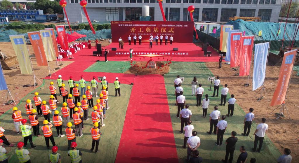 金秋九月、丹桂飘香。9月16日上午,学校孔明路校区1#实训楼(人工智能产教融合实训基地)项目开工奠基仪式隆重举行。学校领导温道军、王伟、杜建根、贾庆成、屈保中、马小兵、侯同江,广州一建建设集团有限公司副总经理欧阳寄平、刘伟杨,北京中建工程顾问有限公司华中分公司副总经理司常钧出席仪式。学校基建领导小组成员单位、参与1#实训楼建设的监理工程师、施工人员参加了开工奠基仪式。仪式由党委副书记杜建根主持。