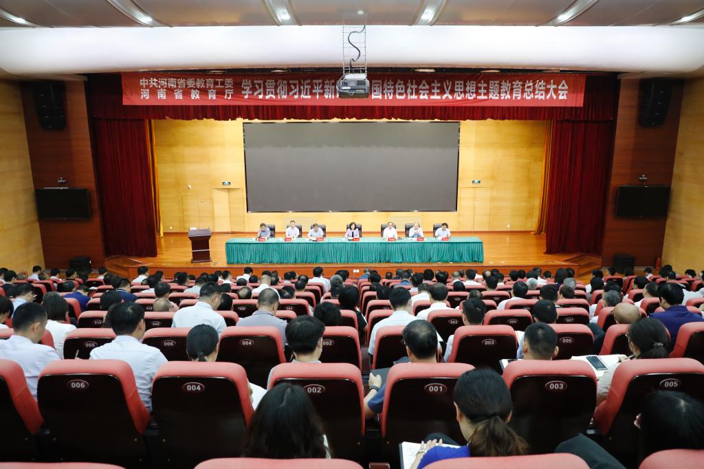 9月 15 日下午,委厅学习贯彻习近平新时代中国特色社会主义思想主题教育总结大会在郑州召开。省委教育工委副书记,省教育厅党组书记、厅长毛杰出席会议并做重要讲话,会议由省委教育工委专职副书记尹洪斌主持。会上,省教育厅直属单位、民办本科、公办专科等5个单位作了典型发言。