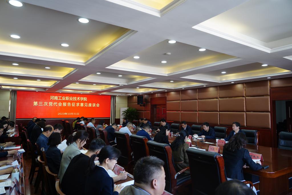 2023年10月31日上午,学校在新区第四会议室召开第三次党代会报告征求意见座谈会。校领导温道军、王伟、杜建根、王仁伟、樊有平、马小兵、侯同江出席座谈会。学校中层干部、民主党派、无党派人士、高级职称教师、高学历教师、青年骨干教师代表以及群团组织代表参加座谈。座谈会由党委副书记杜建根主持。