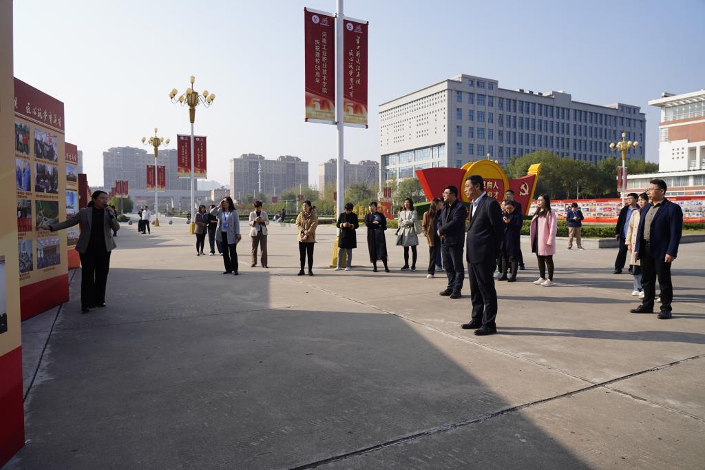 与会来宾参观了建校50周年成果展和人工智能产业学院,听取了学校办学历程、“双高”建设、教学改革、产教融合、社会培训、服务行业发展等方面情况介绍。