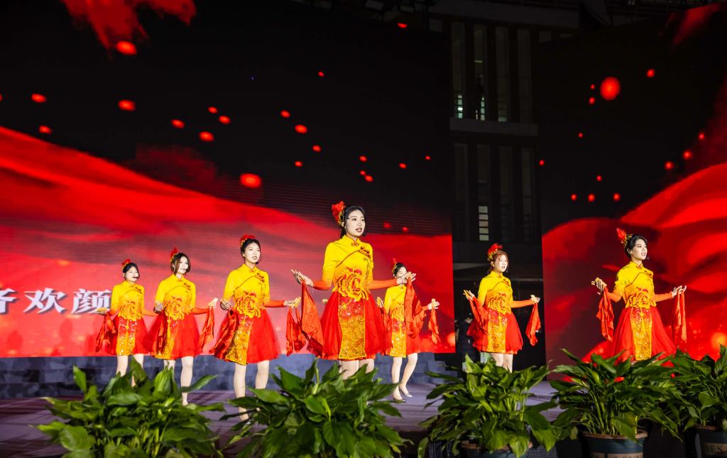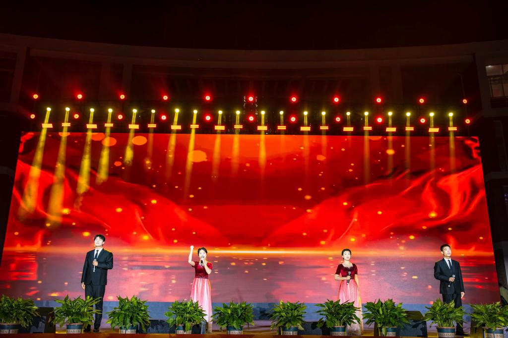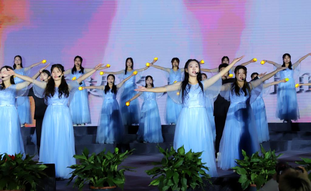 第三篇章《百舸争流》,由各个学院青年学生带来的创意走秀,生动展现了青春的朝气蓬勃;小品《你是这样的人》展现了学校取得的成就是一代又一代人前赴后继,接续奋斗换来的,向全体老领导老教师们致敬;器乐串烧《盛世国乐》,用中西乐器跨界演绎了四大名著电视剧里的经典旋律,让观众沉浸其中感受音乐的魅力;快板舞《不负韶华谱新篇》以朗朗上口的快板词、动感的节奏、欢快的舞步,生动讲述了学校五十年光辉历程。