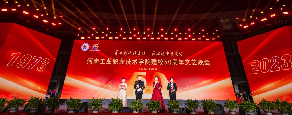 11月16日晚,学校在孔明路校区隆重举行庆祝建校50周年文艺晚会。校领导温道军、王伟、杜建根、王仁伟、屈保中、樊有平、马小兵及学校老领导、校友代表、师生代表等万余人齐聚神舟广场,共同庆祝学校建校50周年华诞。晚会同步进行网络直播,全体师生共度欢乐时刻。