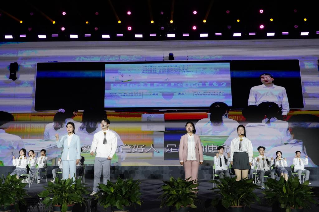 第二篇章“师生情深”,歌曲《我们在这里》是为献礼学校建校五十周年精心作词作曲,唱出了学子们对学校的热爱,对老师的感恩,对青春的致敬;表演唱《是老师是学生》改编自歌曲《是妈妈是女儿》,由师生共同歌唱、娓娓道来,情感细腻,抒情写意,引起现场观众的强烈共鸣;小合唱《如愿》唱出了祖国在一代代中国人的奋斗与传承中不断壮大,中华民族的伟大复兴梦正在实现,一代代为之奋斗的前辈们终于如愿,激励我们接过历史的接力棒勇往直前。
