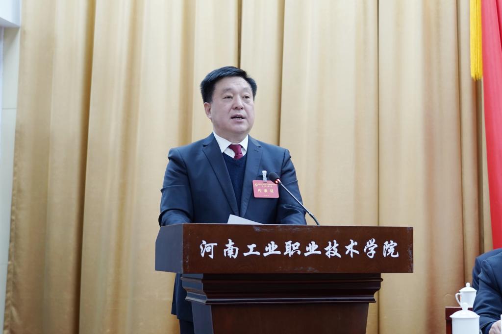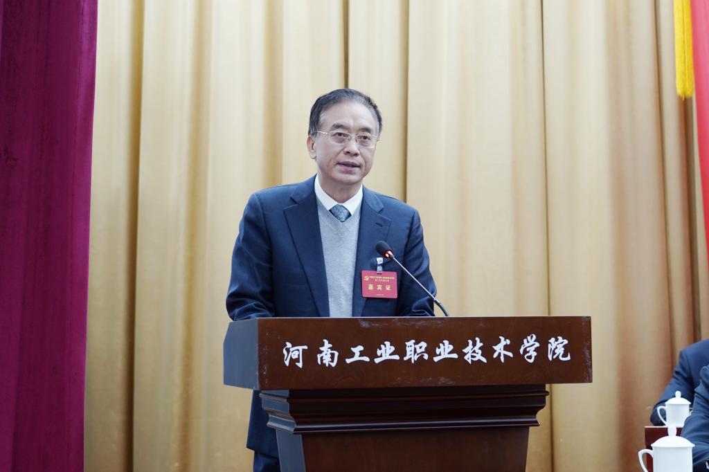 何秀敏同志代表省委教育工委、省教育厅向大会的胜利召开表示热烈祝贺,向与会代表和全校共产党员、师生员工致以诚挚的问候。何秀敏同志指出,第二次党代会以来,学校党委团结带领全校党员和广大师生员工,以习近平新时代中国特色社会主义思想为指导,紧抓国家“双高计划”建设和河南省打造国家创新高地的历史机遇,守正创新、踔厉奋发,为服务军民融合发展、制造强国、乡村振兴等国家战略和区域经济社会发展培养了大批高水平、高素质、创新型技术技能人才,为完善现代职业教育体系和服务经济社会发展作出了积极贡献。