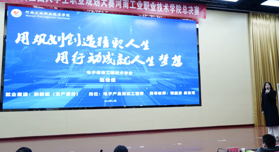 12月19日下午,首届全国大学生职业规划大赛新葡的京集团8814vip总决赛在学校孔明路校区大学术报告厅举行。南阳市人社局就业创业服务中心国家级高级职业指导老师张树勋等优秀就业创业指导名师,卧龙电气南阳防爆集团股份有限公司技术中心主任杜振坤、想念食品股份有限公司人力资源经理陈佳卉等优质企业代表担任评委。副校长屈保中出席,招生就业处负责同志及各学院大赛负责人、职业规划大赛选手和指导教师、创新创业学院专兼职教师、学生代表参加活动。本次总决赛由招生就业处主办、基础科学教学部承办。