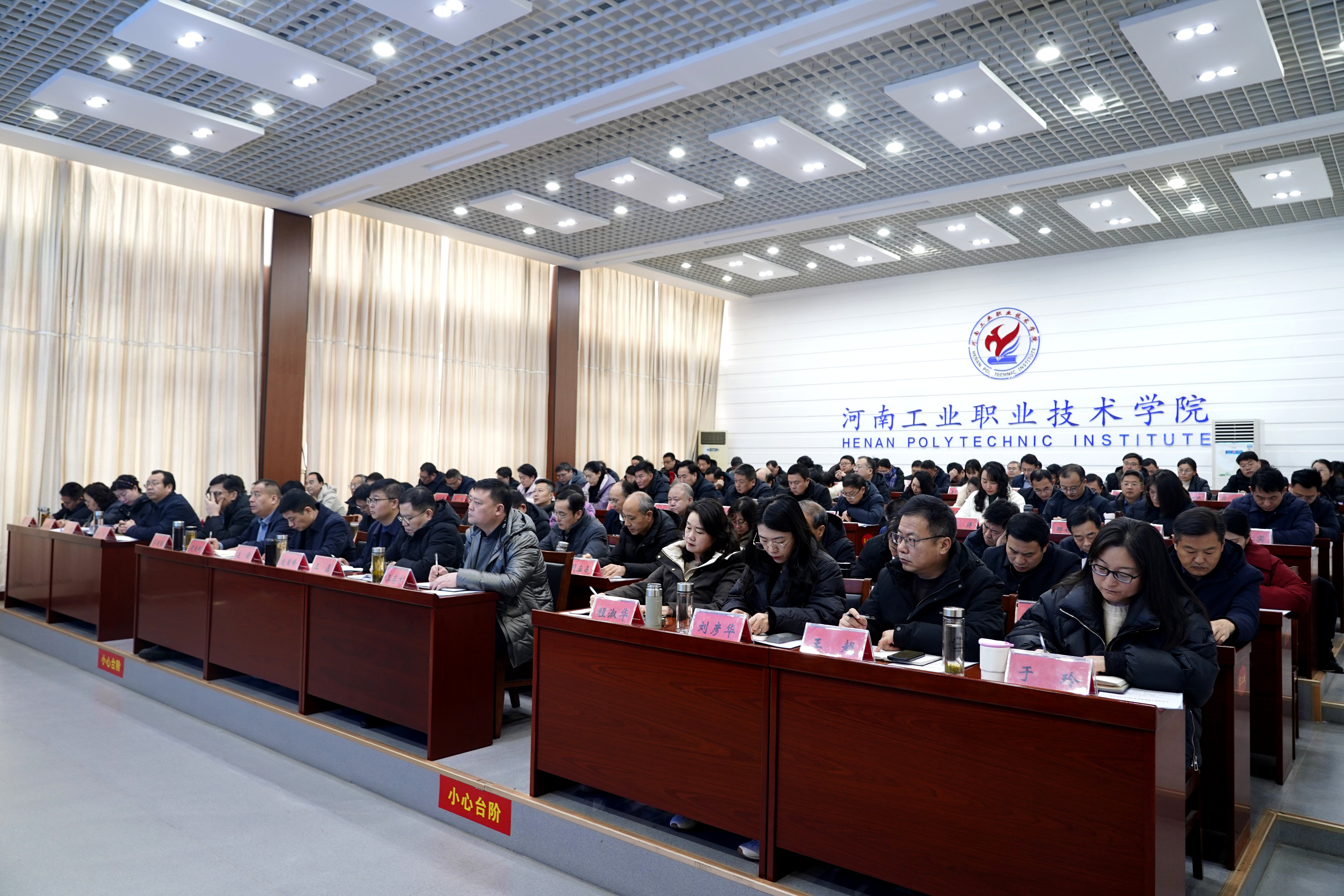 会上,校长屈保中就寒假重点工作作出部署。他指出,一是锚定转型定位,全面做好职业本科建设的思考谋划工作。要围绕“怎样办好职业本科”,加强对相关政策、理论和先进经验的学习研究,以思想转变引领发展转型。提前梳理相关制度,跟进首批职业本科招生专业评审,为学校职业本科教育开好头、起好步。二是优化资源布局,做好实验室调整搬迁工作。要根据搬迁调整方案对实验实训室资产进行全面盘点,确保资产清晰、过程安全,新学期所有实验实训场所按时投用、运行顺畅。三是着眼提质增效,扎实做好“双高”专业群绩效评价工作。深化以评促建,持续优化专业群建设,做好“双高”绩效数据上报以及省“双高”建设方案备案工作。完善项目管理制度体系,健全科学、规范、高效的长效机制。四是做好谋篇布局,开展“十五五”规划编制准备工作。重点围绕本科层次办学、产教融合深化、治理体系现代化、师资队伍建设、校区功能布局等方面开展调研,学习借鉴先进理念与成功经验。五是提前统筹谋划,做好新学期各项常规准备工作。持续做好教学成果奖培育、新学期各项教学运行准备、企业兼职教师选聘等工作。组织开展好“寒假促就业暖心行动”、大学生“返家乡”社会实践、“牢记嘱托践使命 行走中原看巨变”主题思政教育实践等活动。六是推进服务保障,做好基建修缮与设备维护。加快推进大学生活动中心室外工程及北侧体育场地项目施工收尾,做好方城校区启用前的各项运行保障衔接,完成光武校区教学楼门窗安装、孔明校区花房及保安服务用房搬迁等工作。七是守住底线红线,毫不松懈抓好安全稳定。坚决维护意识形态安全,开展全覆盖安全隐患排查整治,加强重点部位和环节管控,严格落实应急值守与应急处置要求。八是严守纪律规矩,确保廉洁文明过节。严格执行中央八项规定及其实施细则精神,认真落实上级关于廉洁过节的各项部署,坚决抵制享乐主义、奢靡之风,弘扬勤俭节约优良传统,加强监督检查与警示教育。