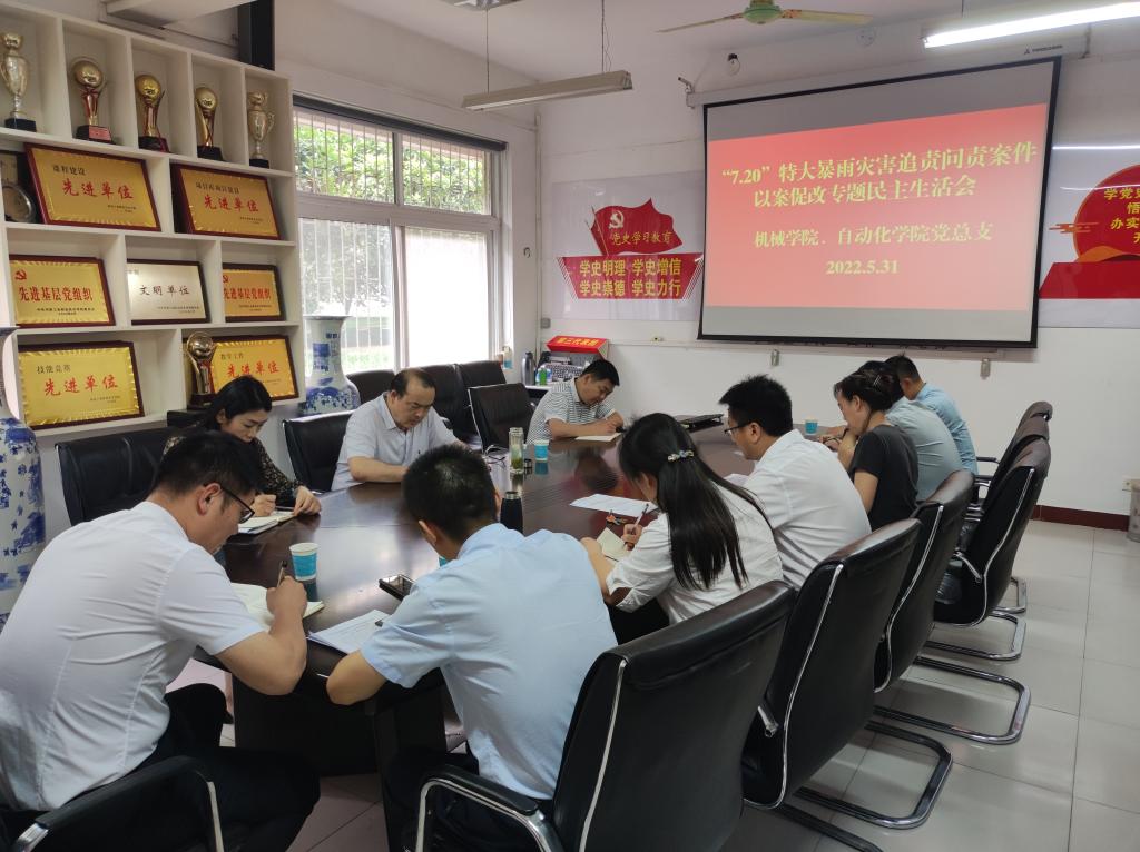 按照上级统一部署,5月31日下午,机械工程学院党总支和自动化工程学院党总支在办公楼2106会议室召开郑州“7·20”特大暴雨灾害追责问责案件以案促改专题民主生活会。党委副书记杜建根到会指导,专题民主生
