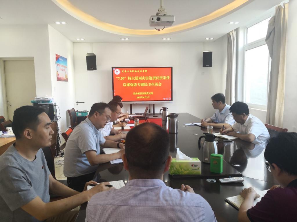 校领导指导经济贸易学院党总支7·20”特大暴雨灾害追责问责以案促改专题民主生活会