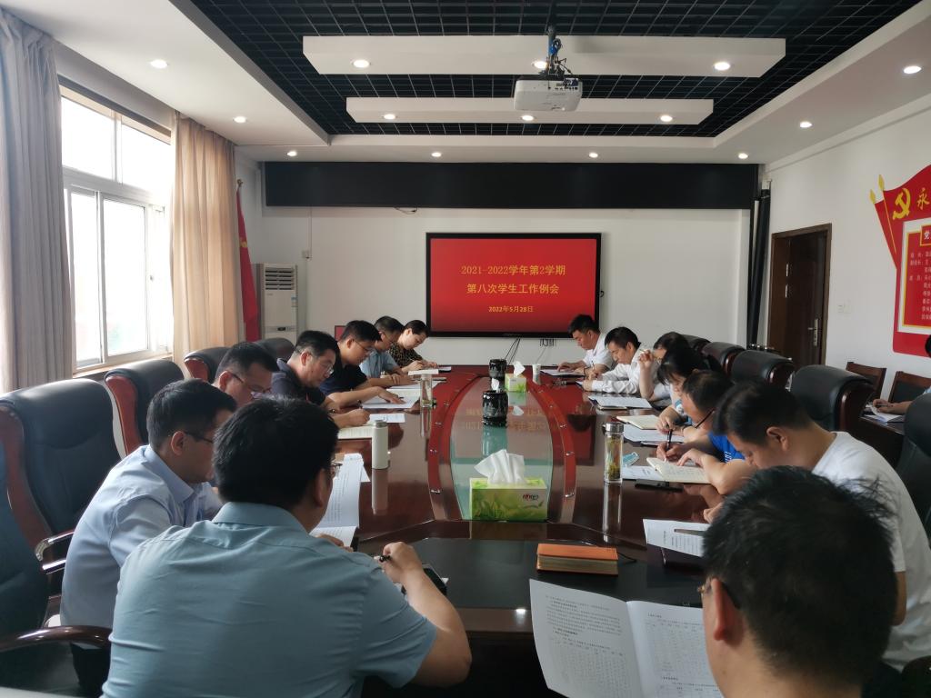 5月28日上午,本学期学校第八次学生工作例会在孔明路校区办公楼第三会议室召开。副校长王仁伟出席并主持会议,学生处、教务处、团委、保卫处、心理健康教育中心、后勤服务中心负责人以及各学院(中心)党总支书记